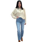 The Beige Crochet Button Pullover features a half-button front and intricate knit detailing for a cozy, boho-chic look. Lightweight yet warm, it’s a piece you’ll wear season after season.
