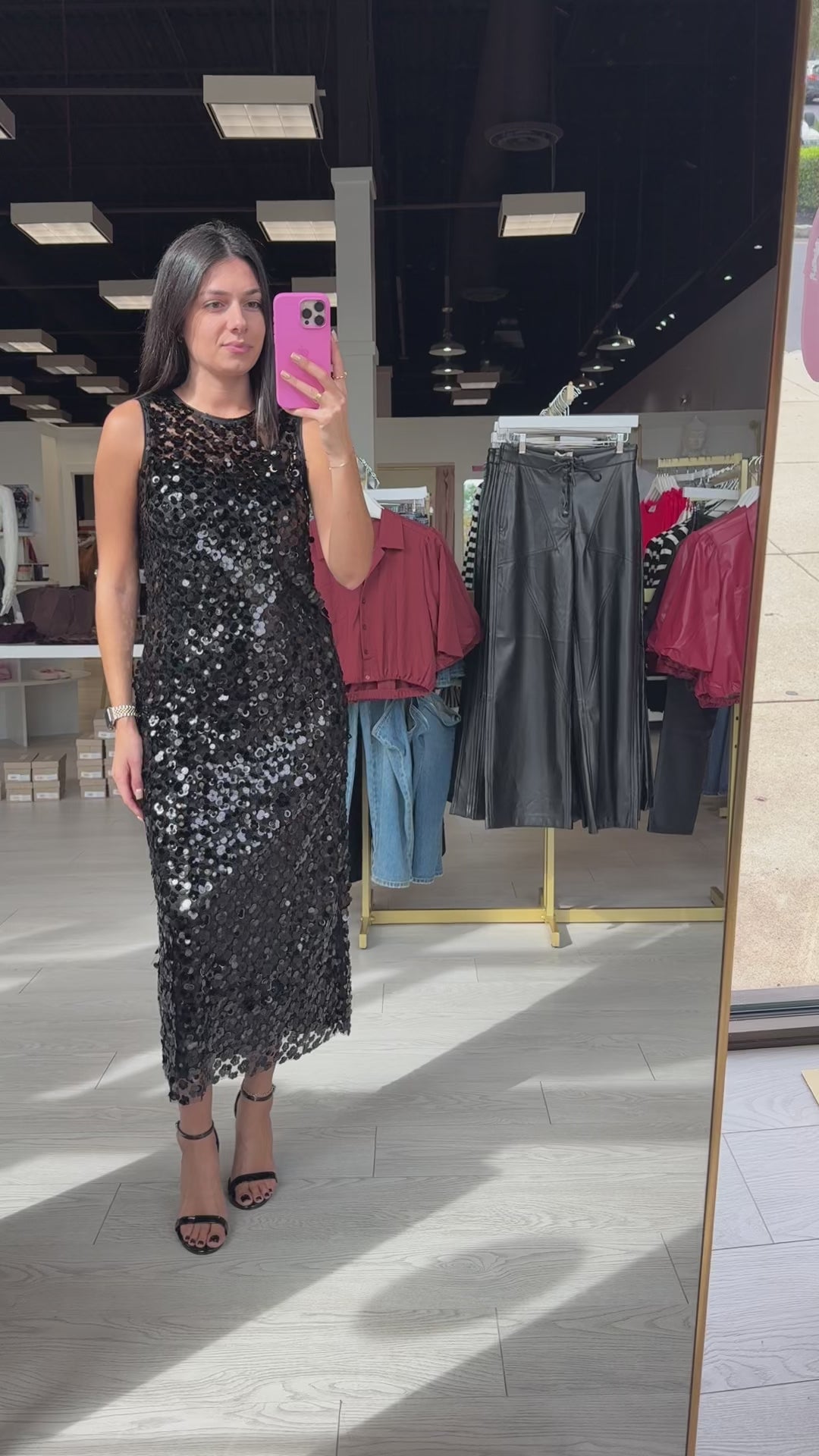 Alicia’s Styling Tip: Throw on strappy heels for a glam girls’ night, or keep it sleek with slicked-back hair, gold hoops, and a bold red lip for holiday parties.
