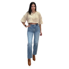 Style with Malibu high rise straight jean & Brown pleated faux leather crop jacket