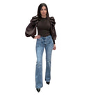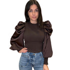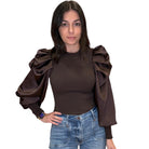 Chocolate Puff Satin Sleeve Blouse