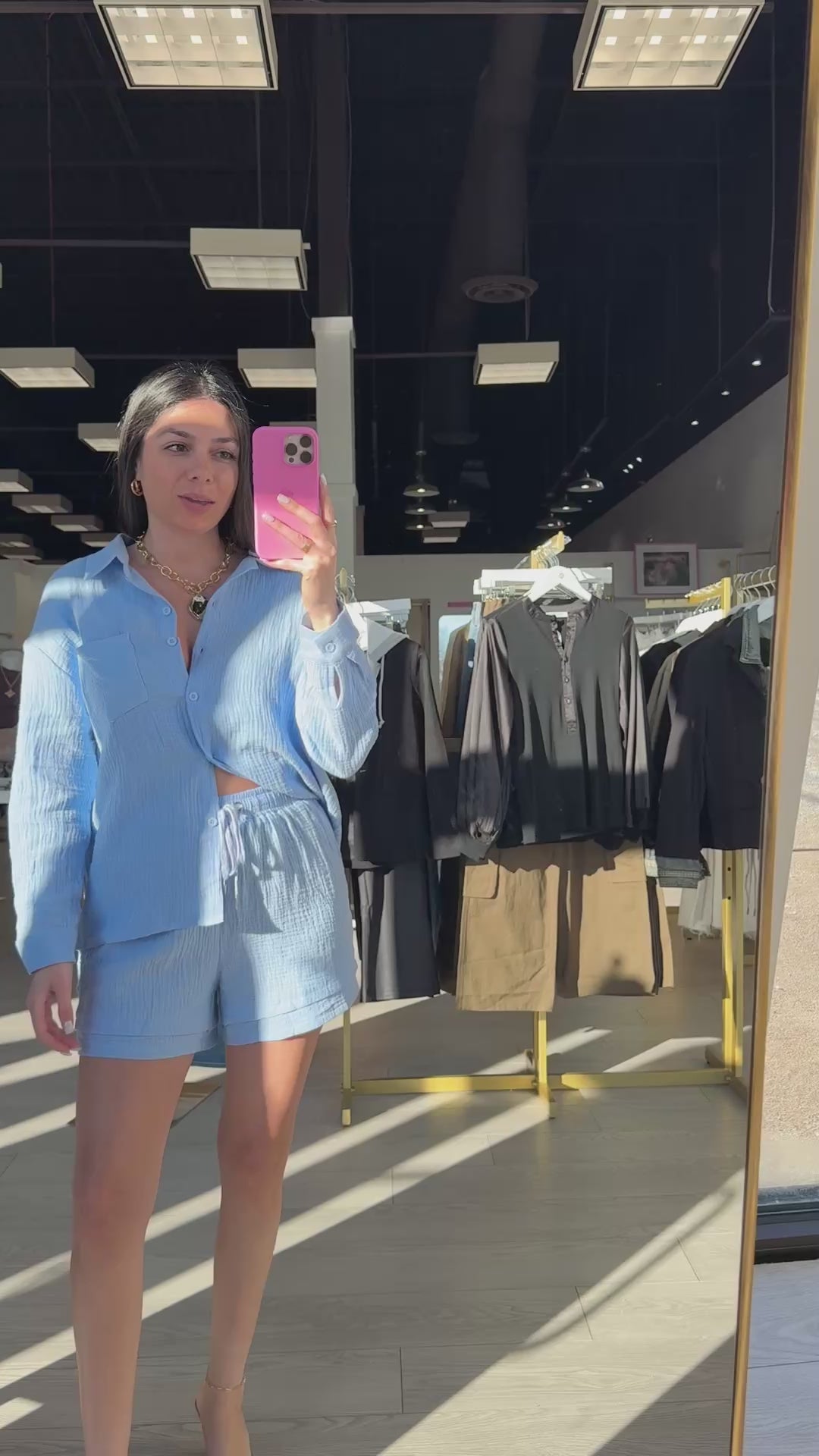 Fresh color meets everyday comfort 💙 This cotton button-down and shorts combo feels light, relaxed, and perfect for warm weather styling.