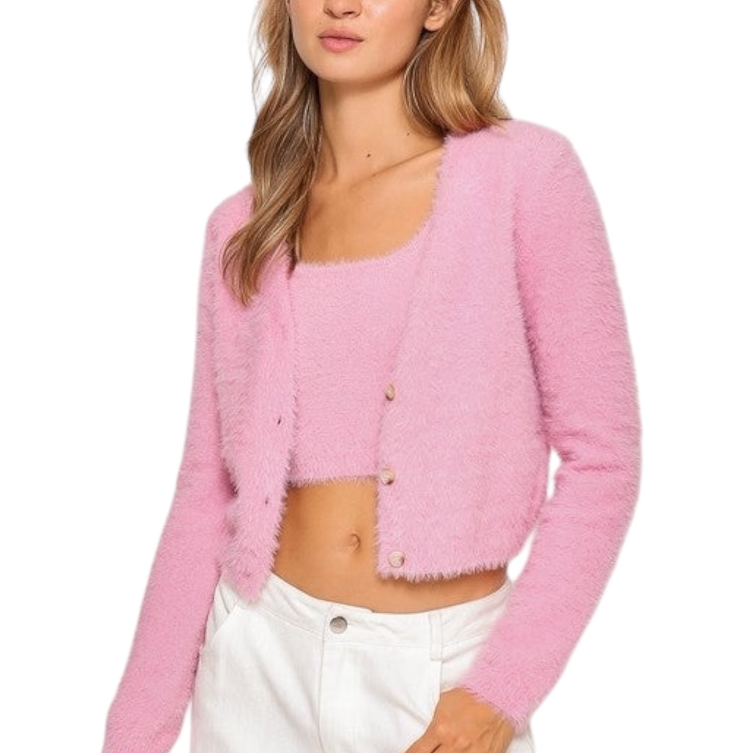 Soft, sweet, and made for slow mornings or cozy nights in 🤍 This fuzzy cardigan set is all about comfort without sacrificing style. The ultra-soft cami layers perfectly under the matching button-down cardigan, giving you that effortless, pulled-together look while still feeling like loungewear. Wear it at home, out for coffee, or styled up with denim for an easy everyday outfit ☕🩷
