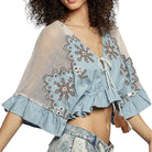 A fresh take on a feminine favorite. This Light Denim version of the Crochet Bloom V-Neck Top features the same delicate embroidery, crochet shoulder detail, soft cotton feel, and ruffle hem in a cool, wearable blue hue 💙✨