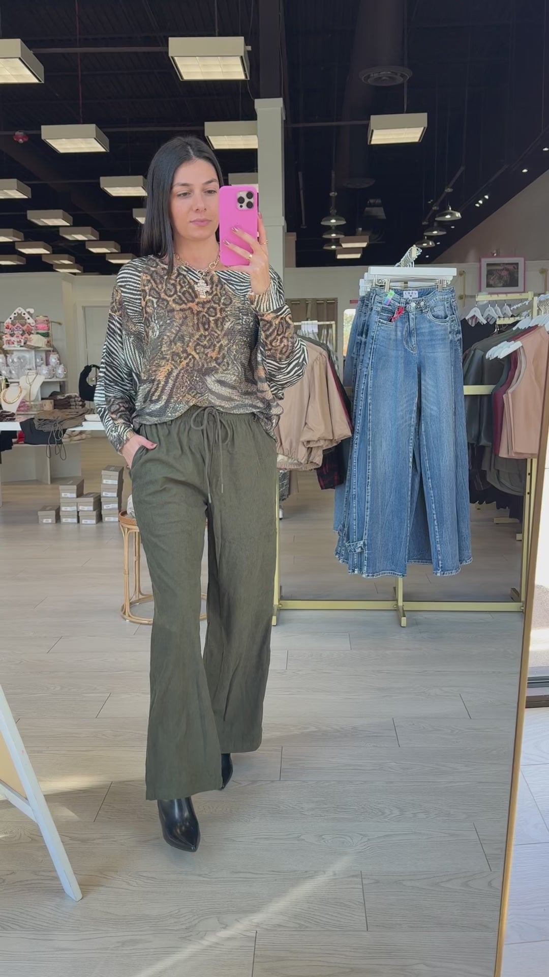 Soft cord texture + relaxed drawstring fit = instant effortless 🍃 These flowy wide-leg pants are made for laid-back days with a luxe twist.