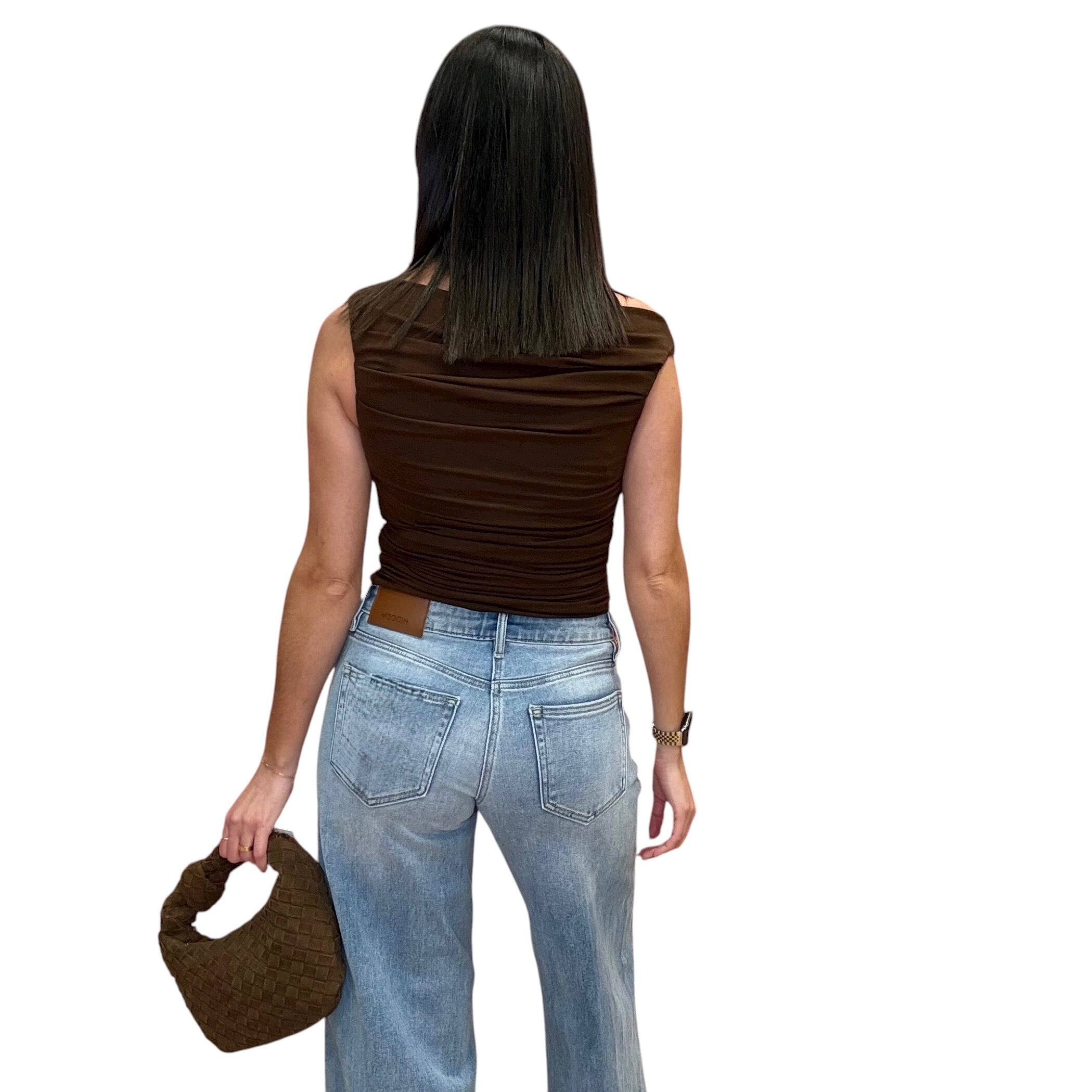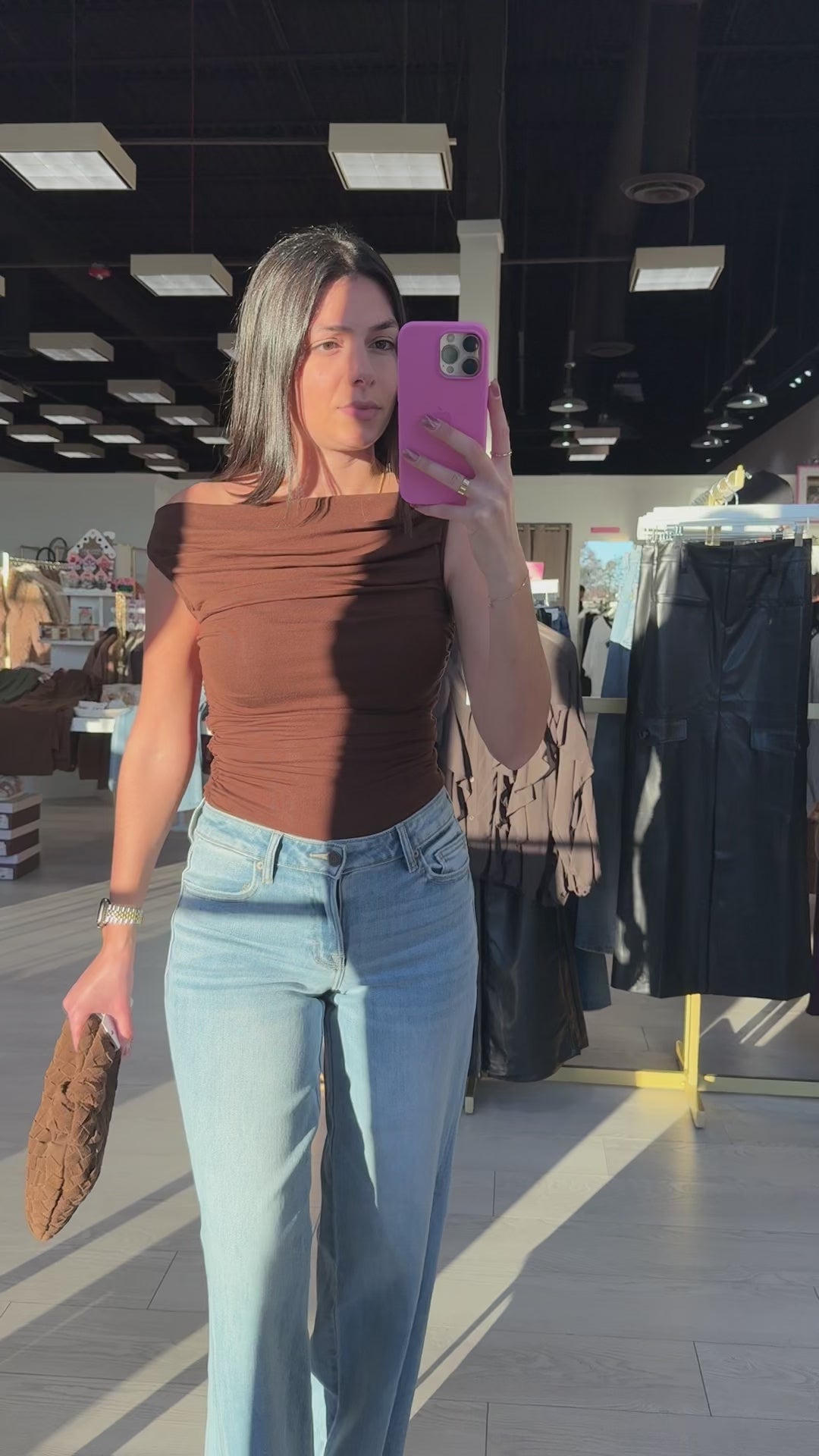 Soft, rich, and irresistibly cozy ☕ The Espresso Knit Top takes your neutrals up a notch with its warm chocolate hue and flattering off-shoulder neckline. The ruched sides and stretchy knit make it feel tailored yet totally comfortable—think timeless but with an edge.