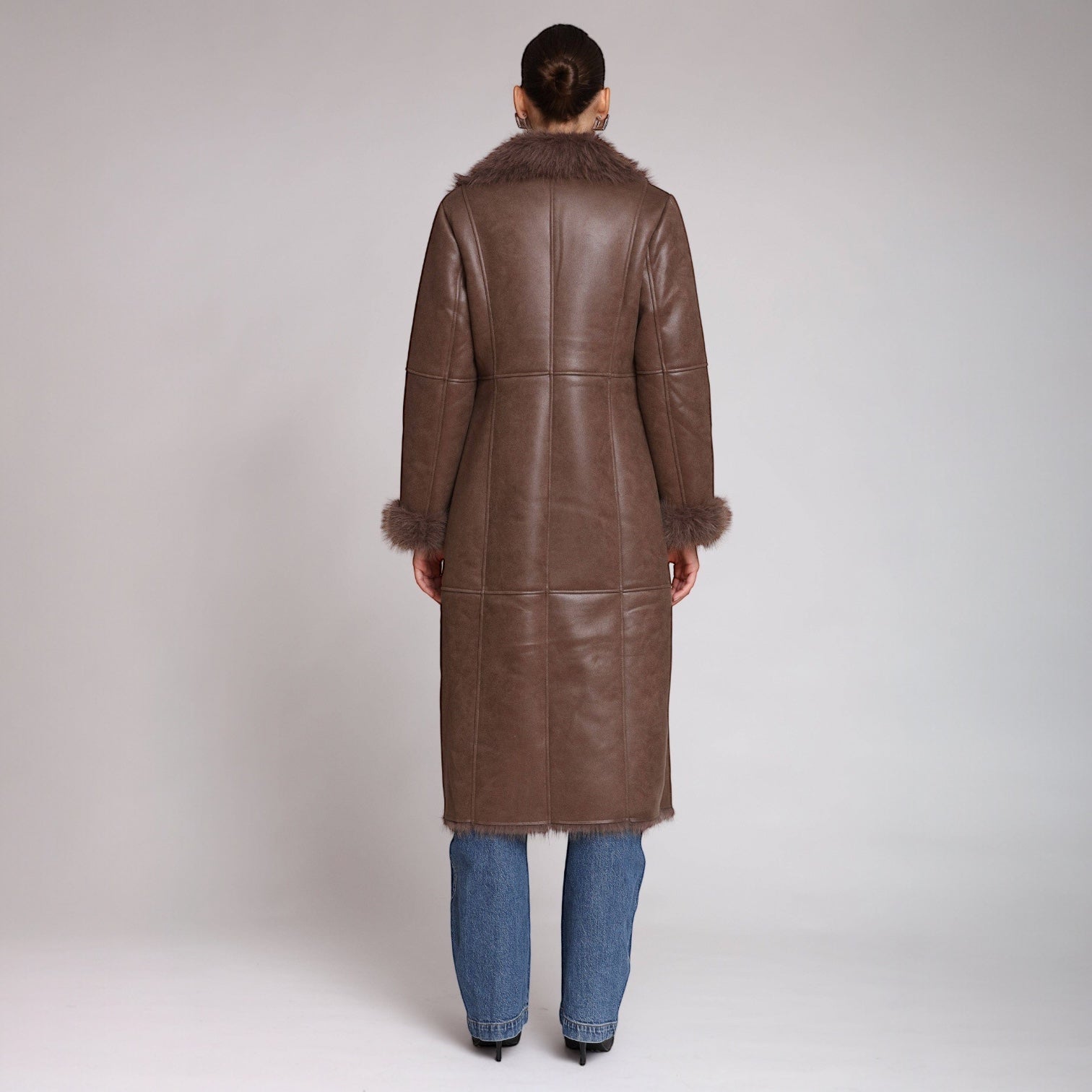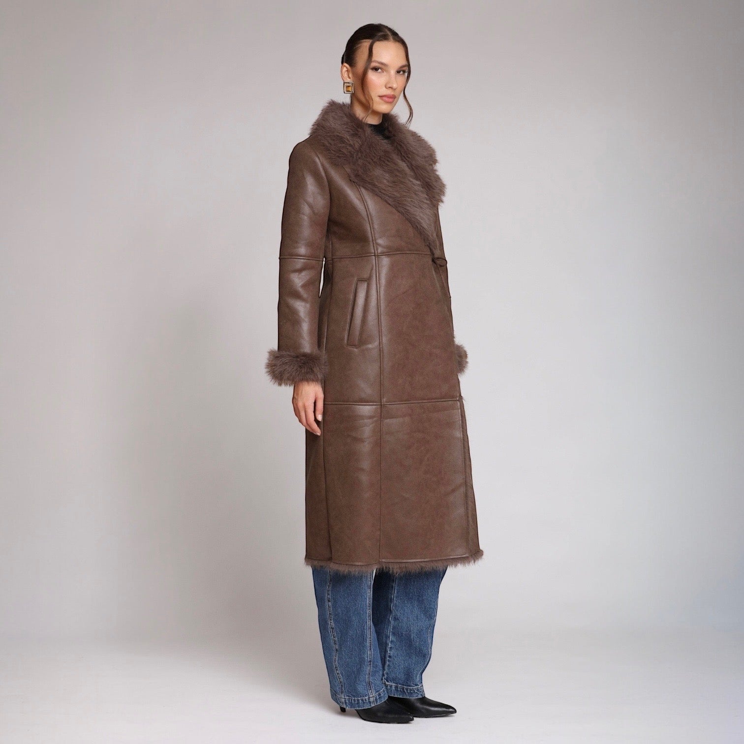 The cozy-chic coat of the season 🤎✨ This chocolate faux shearling wrap coat feels like slipping into a warm hug while still looking insanely polished. The ultra-soft faux leather exterior paired with plush faux fur makes it perfect for city days, chilly nights, holiday outings, or throwing over your favorite lounge set. Warm, luxe, and timeless — this one is a forever piece.