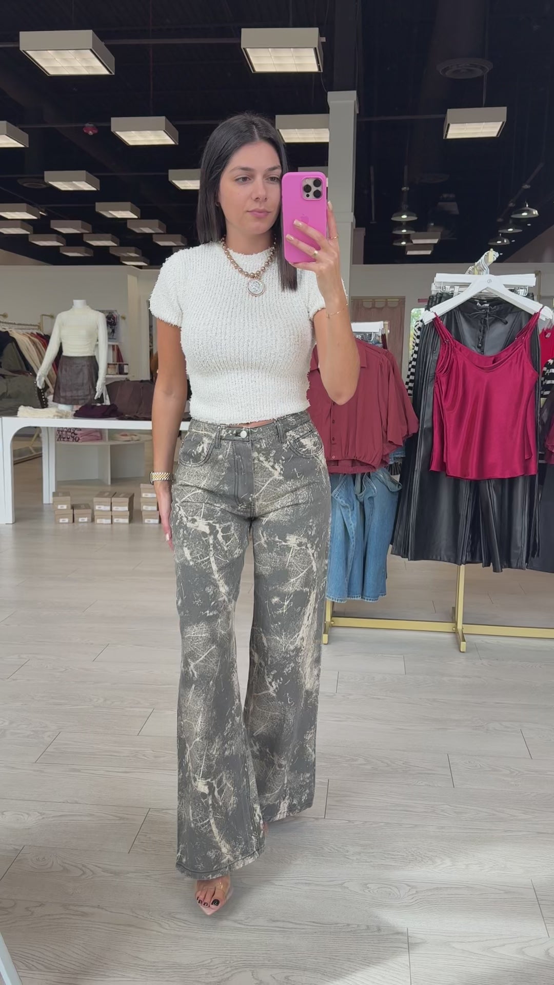So soft, it’s basically a hug. This fuzzy short sleeve sweater features a semi-cropped fit, drop shoulders, and a cozy texture that’s cute and comfy.