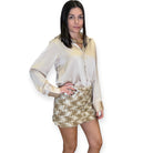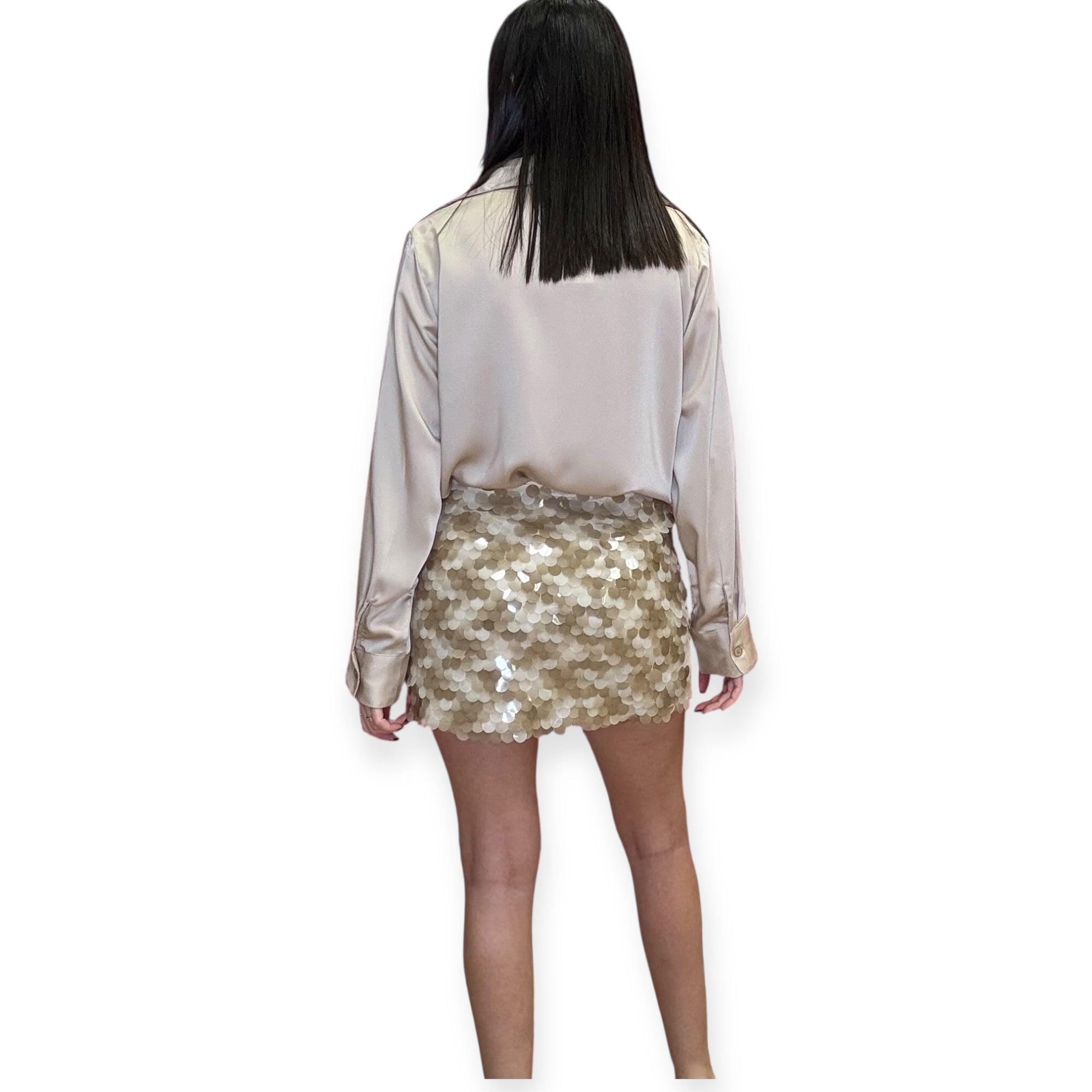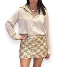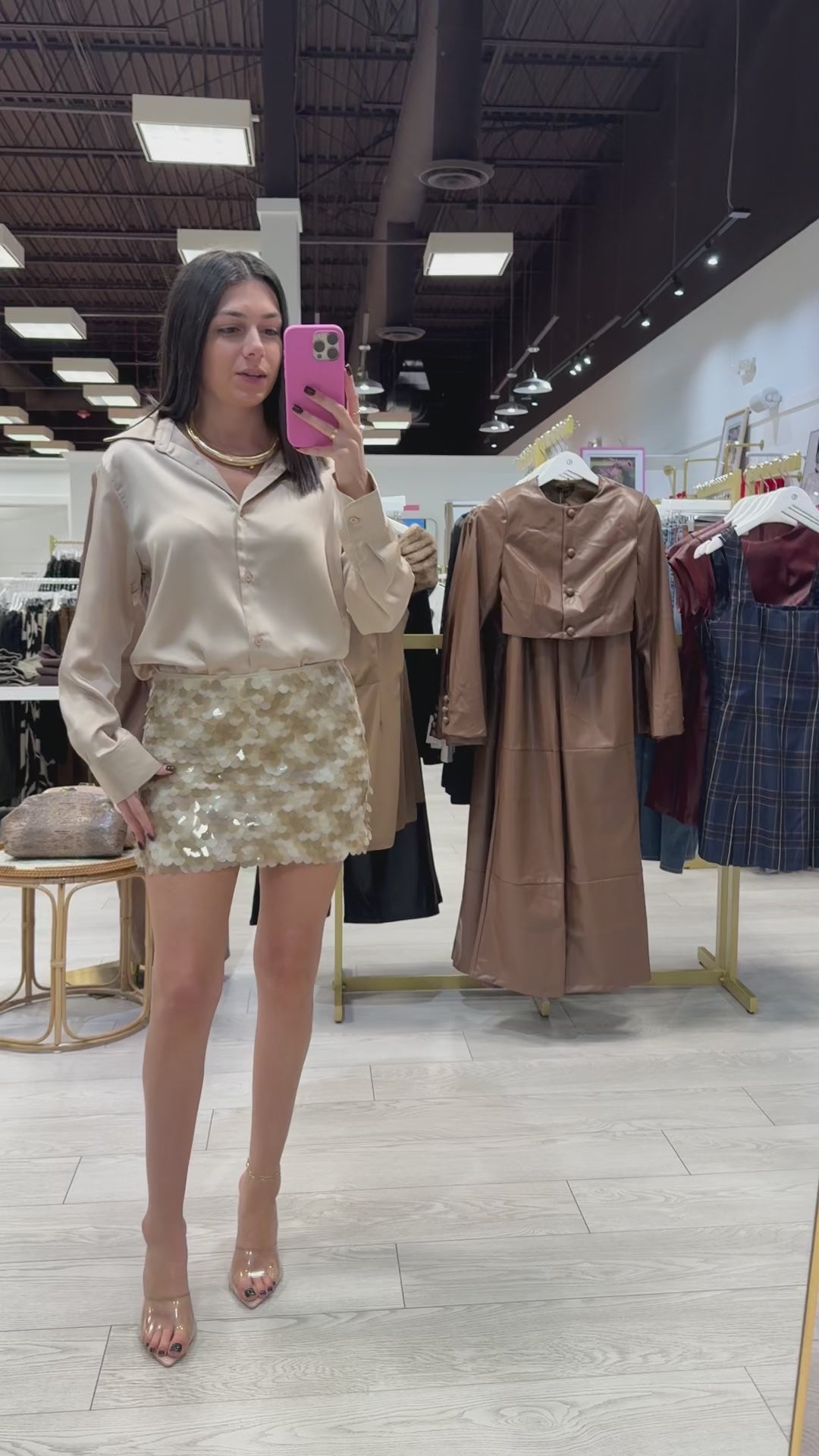 A little shimmer for your season ✨🥂 This latte-toned sequin mini skirt is your go-to for girls’ night, holidays, or any moment you want that subtle glam without going full sparkle bomb. The two-tone sequin blend catches light beautifully while still feeling classy and soft. Pair it with your fave knit, bodysuit, or an oversized blazer for the cutest winter-going-out look.