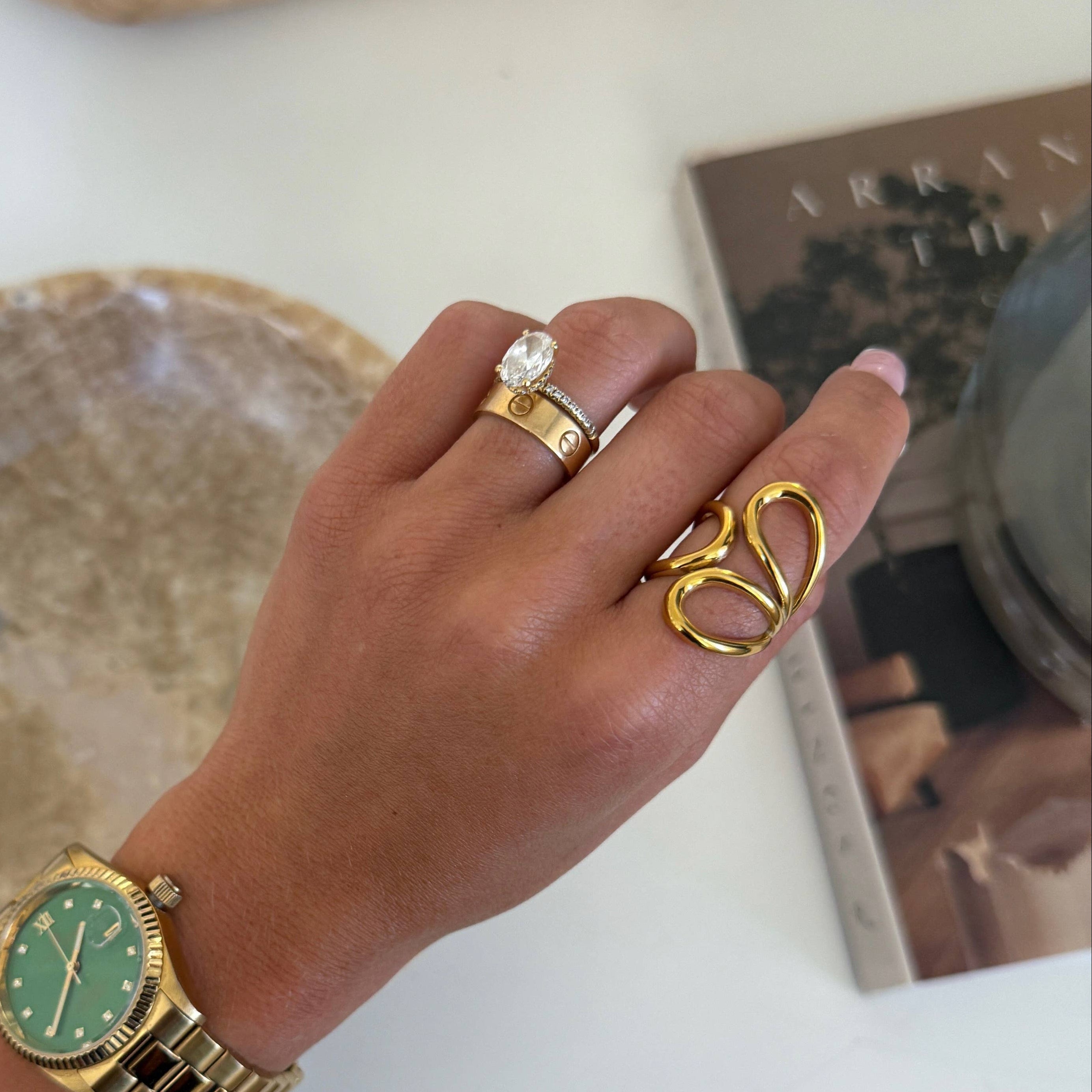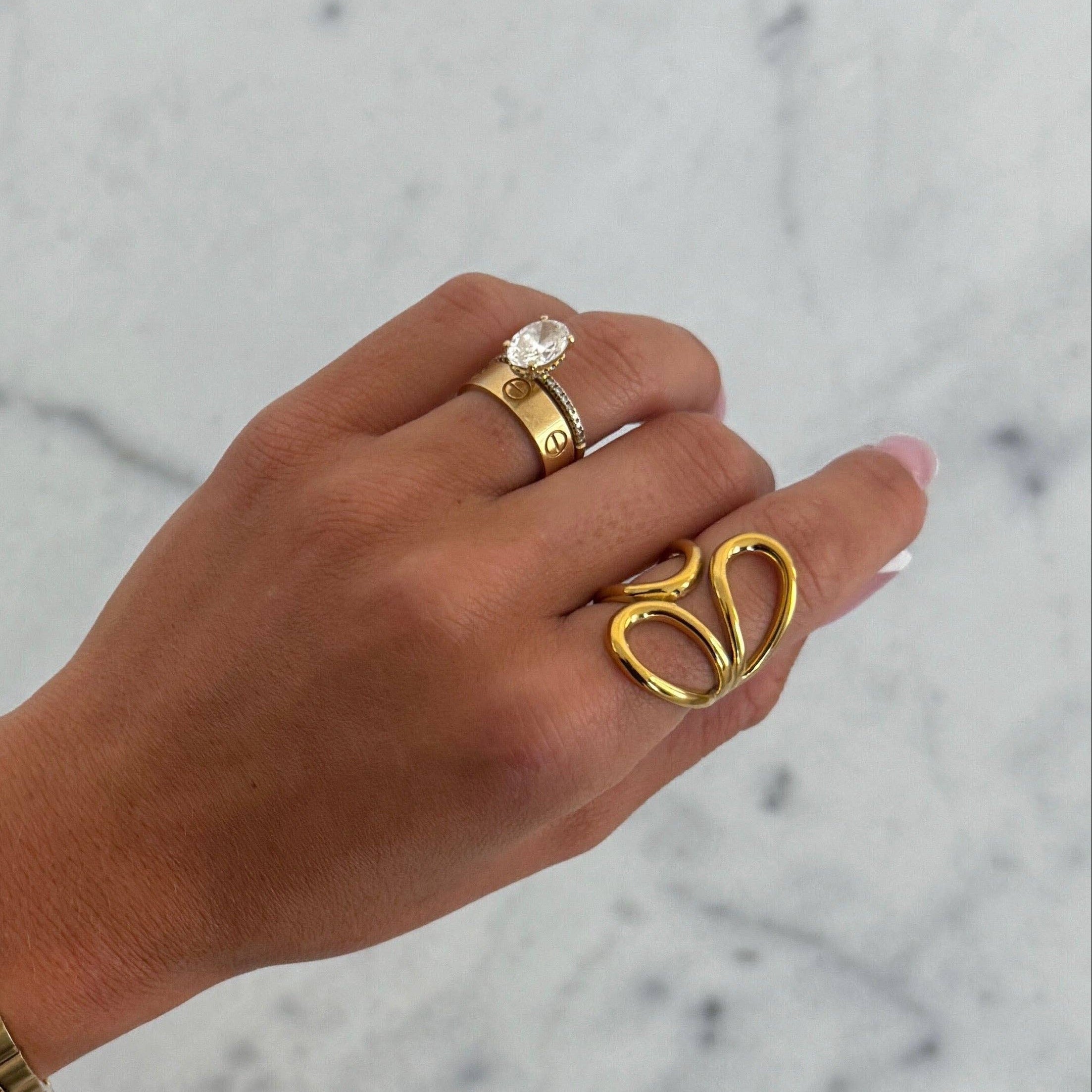 Say hello to your new going-out ring 💛 The Mariposa features a stunning shape that instantly adds glamour. Water-resistant and bold in all the right ways — perfect for date nights, holidays, and every moment you want some sparkle.