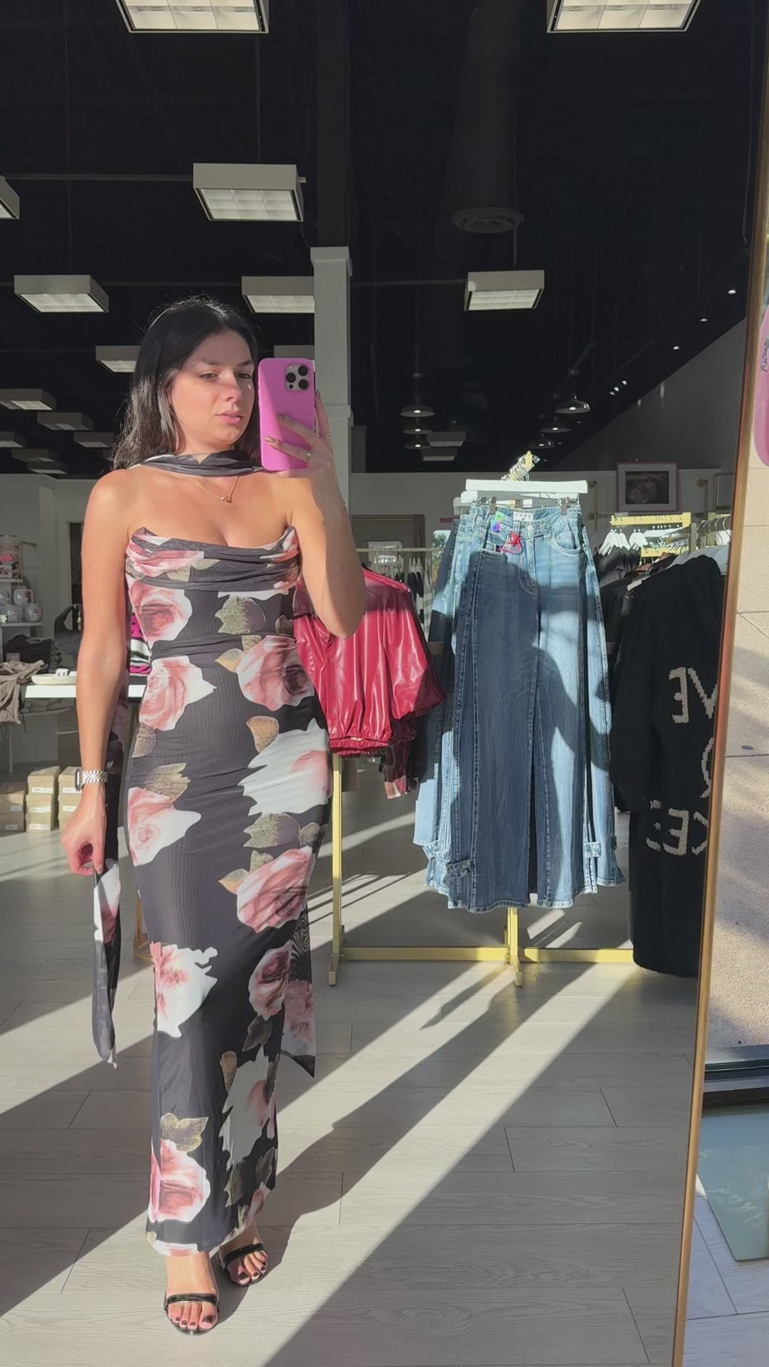 Romantic yet moody — this black floral mesh dress brings effortless charm with its stretch fit, padded corset detail, and soft lining. It’s the kind of dress that feels like fall in the city — feminine but bold.