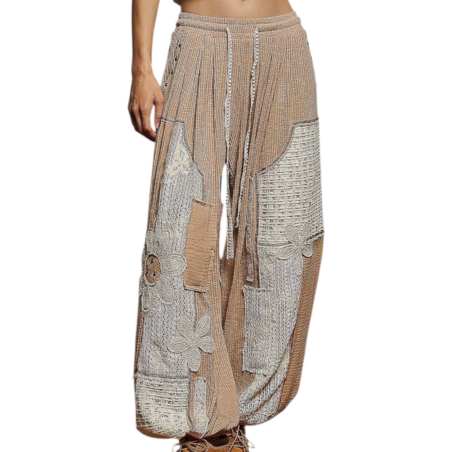 Mocha Patchwork Rib Knit Joggers