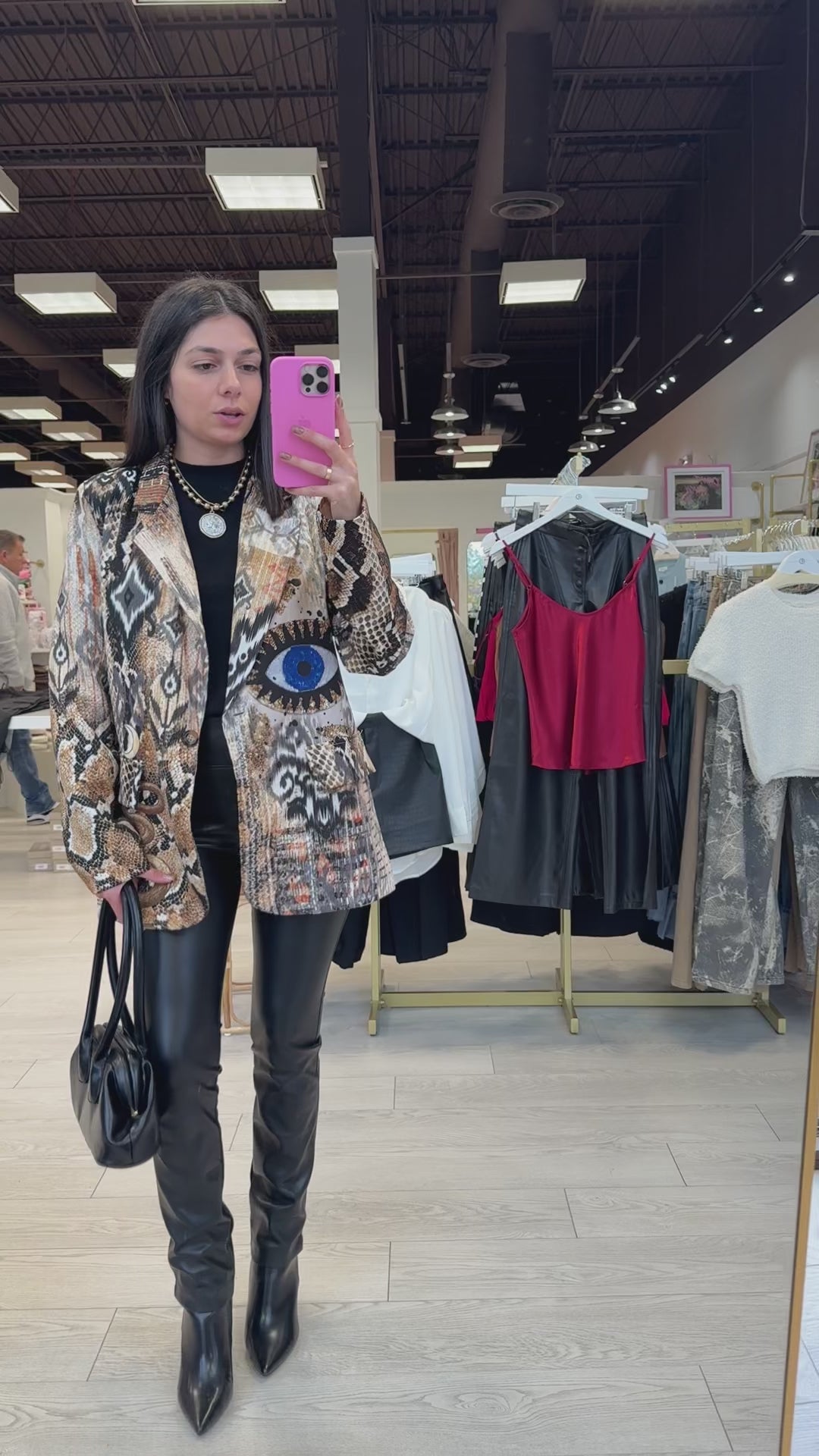 Channel your inner boss energy with this bold Italian-made snakeskin blazer. With its sleek patchwork-inspired print and modern fit, this piece brings high-fashion edge to any look — from jeans to jumpsuits.