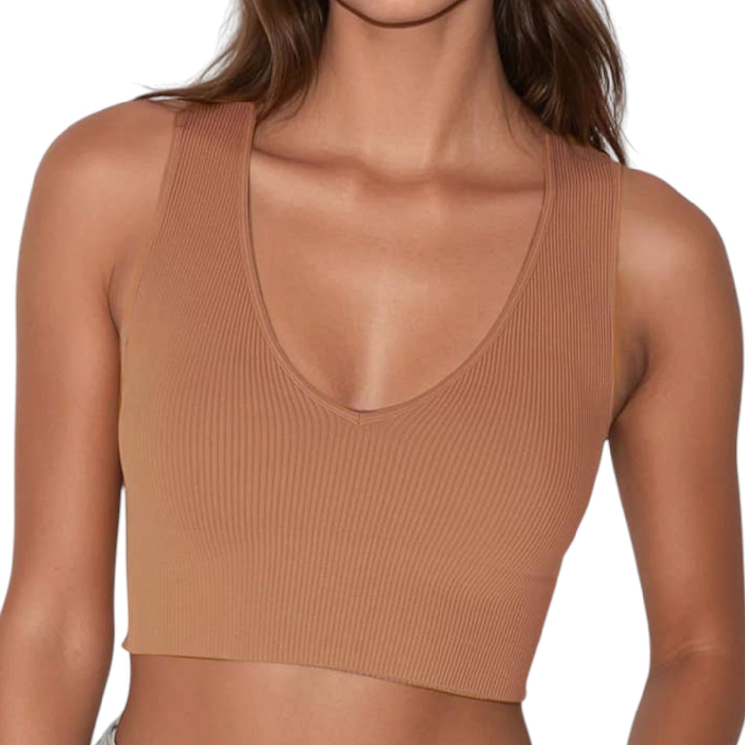 This one size ribbed knit crop top features a flattering plunge V-neckline with a sleek, minimal vibe 🔥 The stretchy fabric hugs just right while staying comfy and easy to wear. A true best-seller style that works for layering or wearing solo — made in the USA and designed to be worn on repeat ✨
