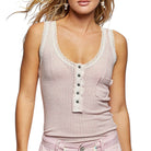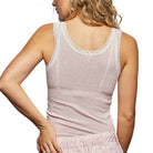 Soft Spoken Lace Trim Ribbed Tank - Pink