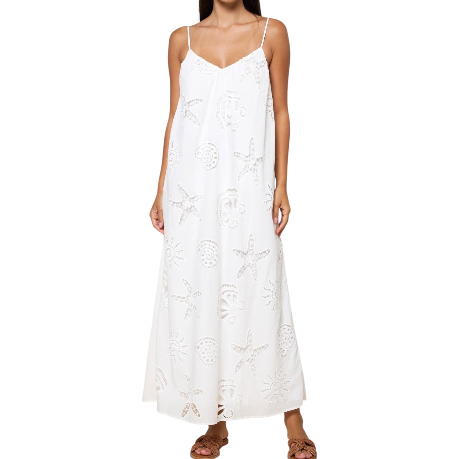 Soft, breezy, and effortlessly feminine 🤍 The Starlit Eyelet Maxi Dress features delicate starfish-inspired embroidery, a flattering V-neckline, and adjustable back-tie spaghetti straps for the perfect fit. Designed in a lightweight, lined silhouette that flows beautifully with every step, she’s your go-to for spring events, summer dinners, beachside weddings, and everything in between. The loose, easy fit keeps it comfortable while still feeling polished and elevated. Romantic but wearable, timeless but fresh ✨