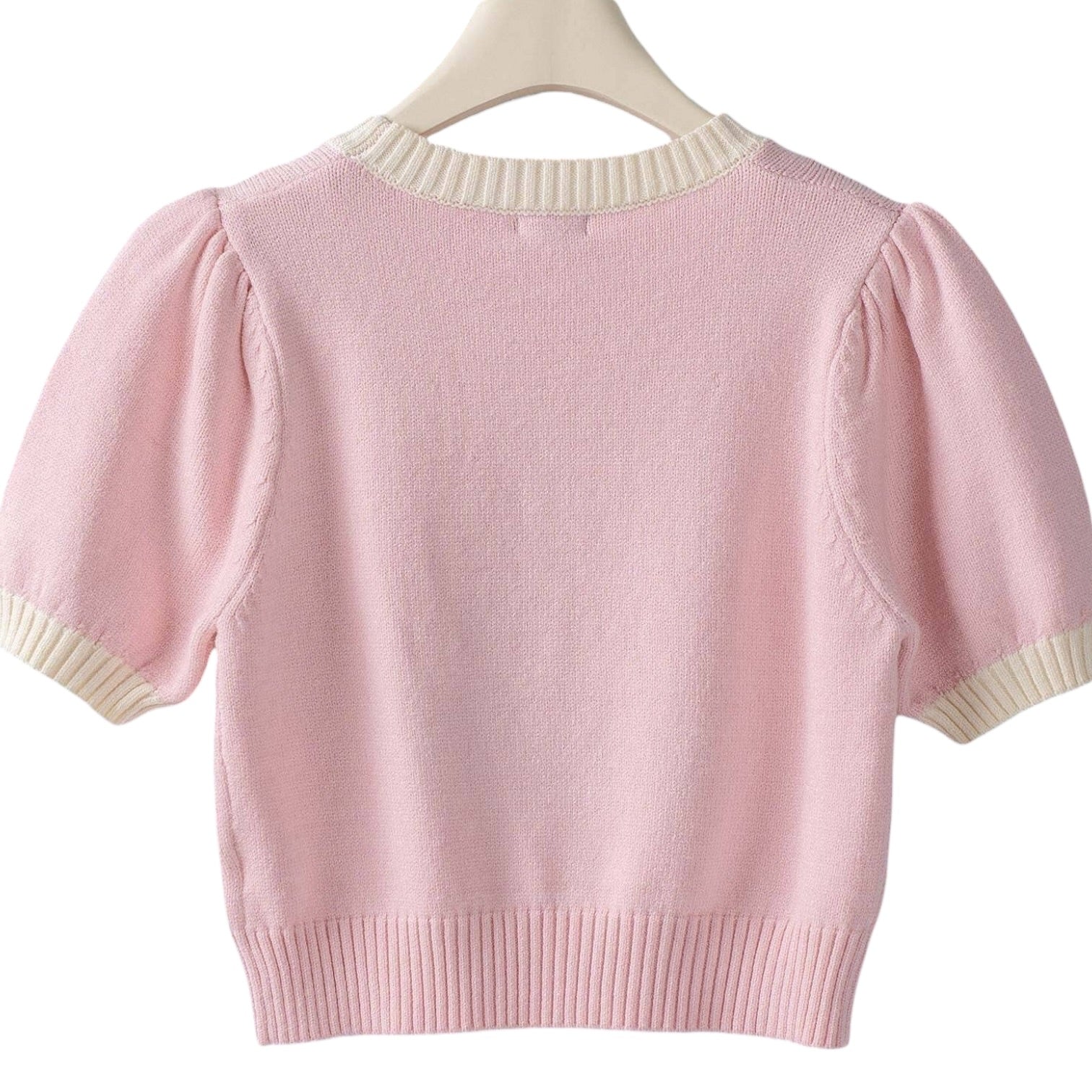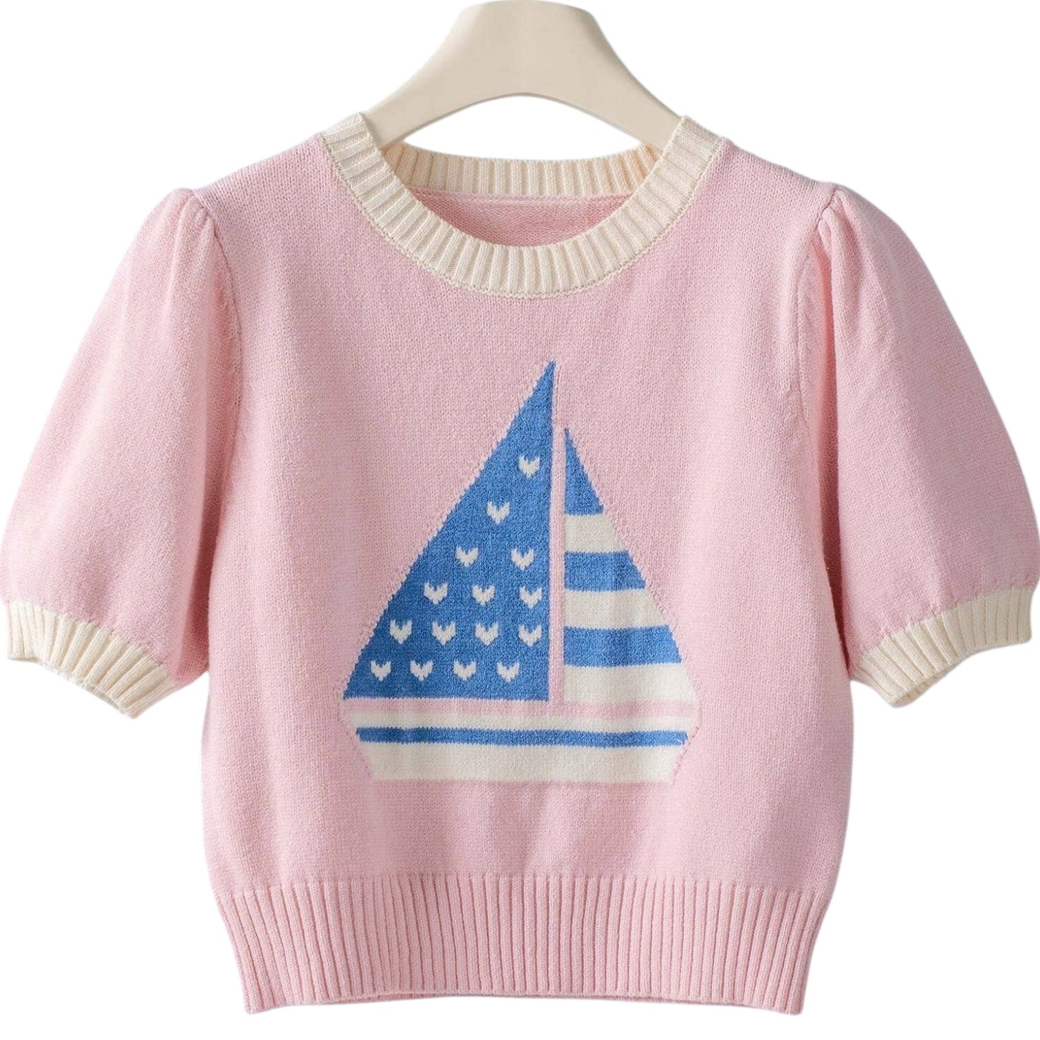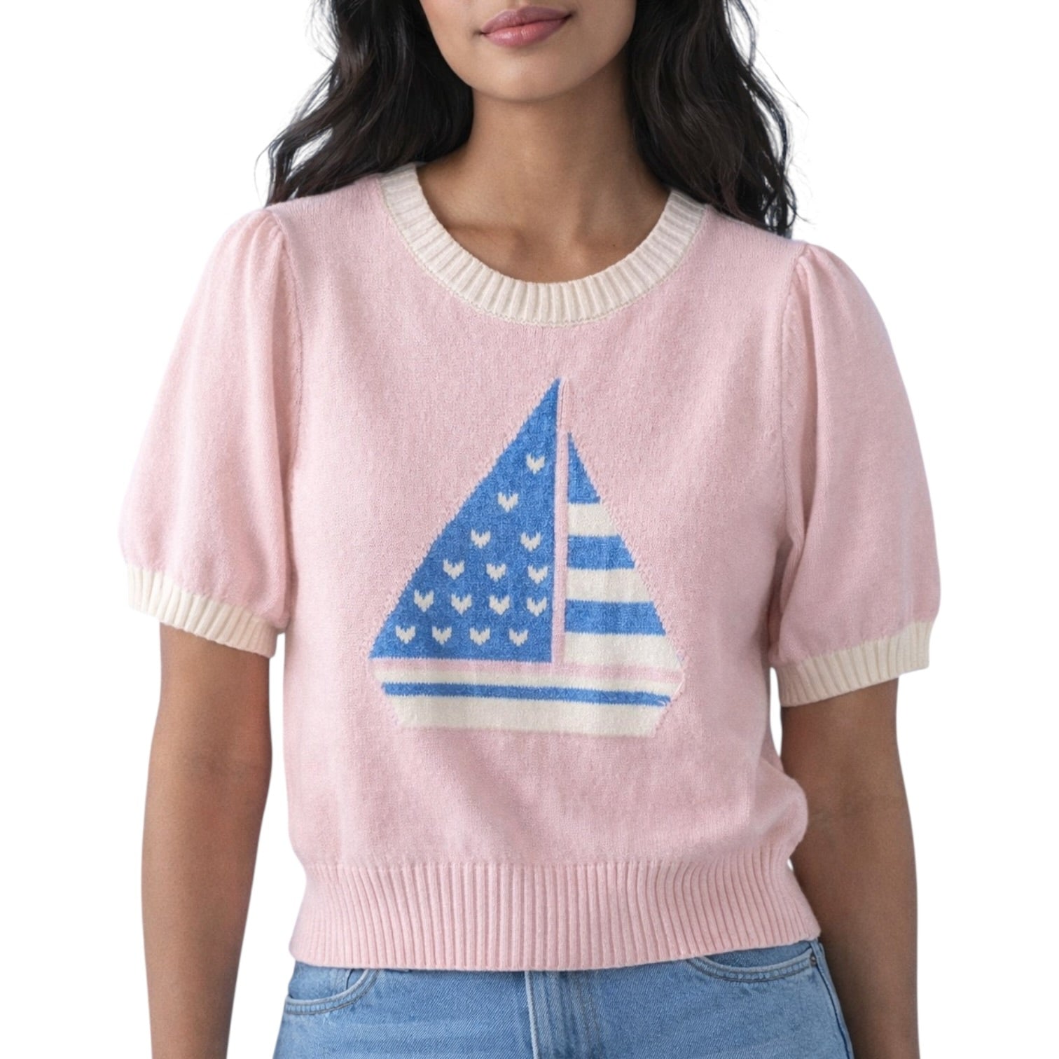 Sweet Escape Sailboat Puff Sleeve Knit Top – Pink