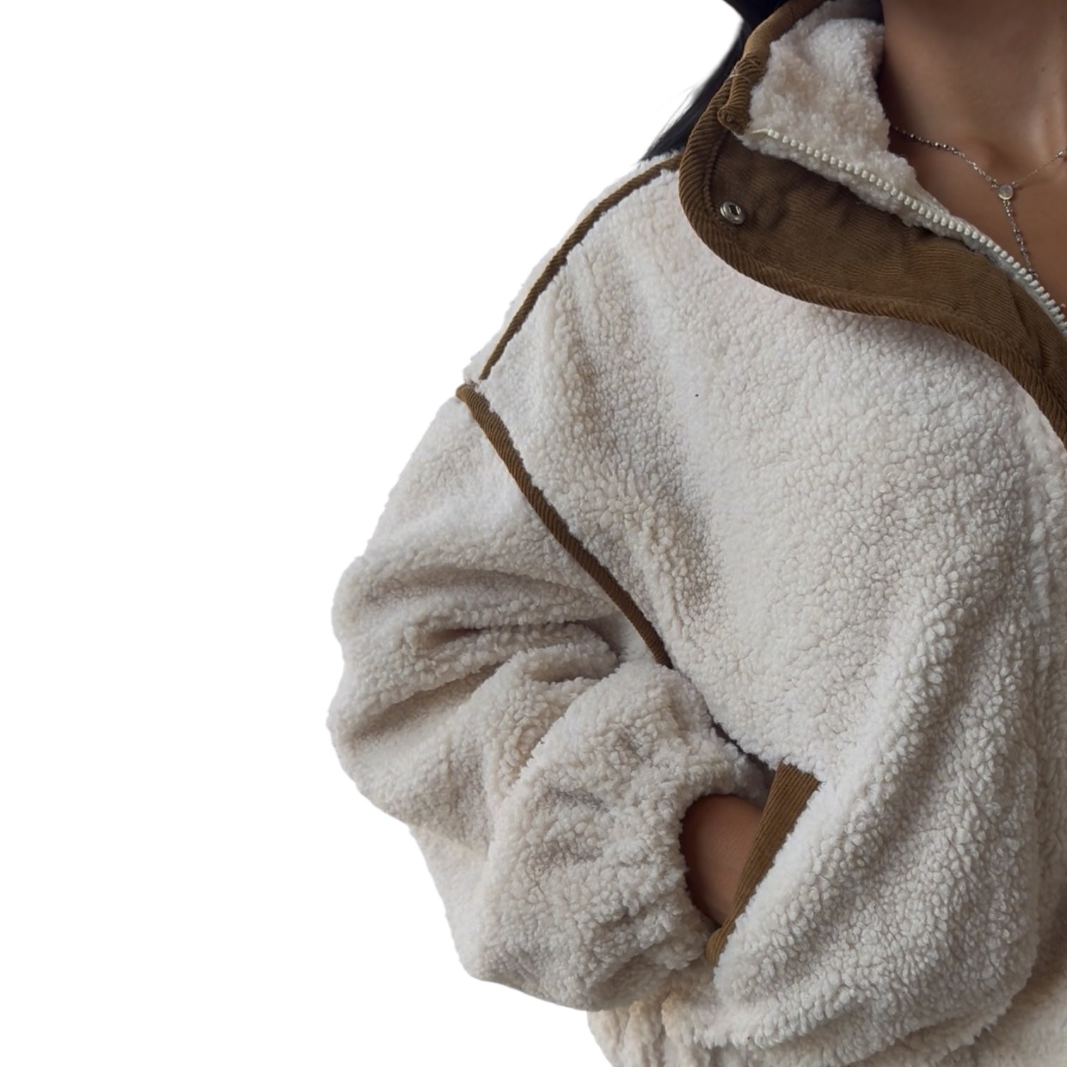 Cozy meets cool in our Cream Fleece Sherpa Zip Jacket ☁️✨ Designed with an oversized fit, soft teddy sherpa fabric, and contrast trim details, this zip-up jacket brings effortless warmth to your fall and winter looks. The elastic hem and cuffs keep the chill out while the plush texture makes it your go-to layer for coffee runs, weekend errands, or just lounging in style. A must-have sherpa jacket for any boho-chic wardrobe.
