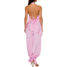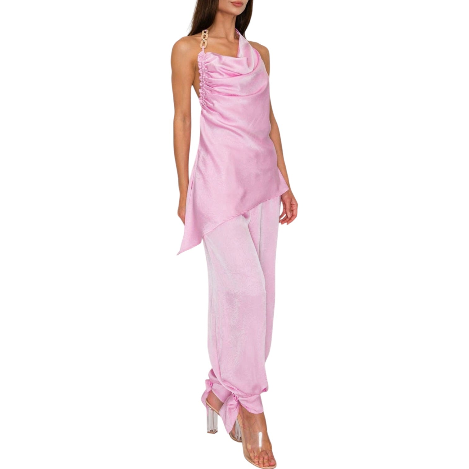 Soft, silky, and seriously eye-catching 💗 This pink halter jogger set features a draped satin-feel halter top with luxe chain strap detail paired with flowy jogger pants for the perfect mix of glam and comfort. Lightweight, breezy, and made for nights out, vacations, and statement moments ✨
