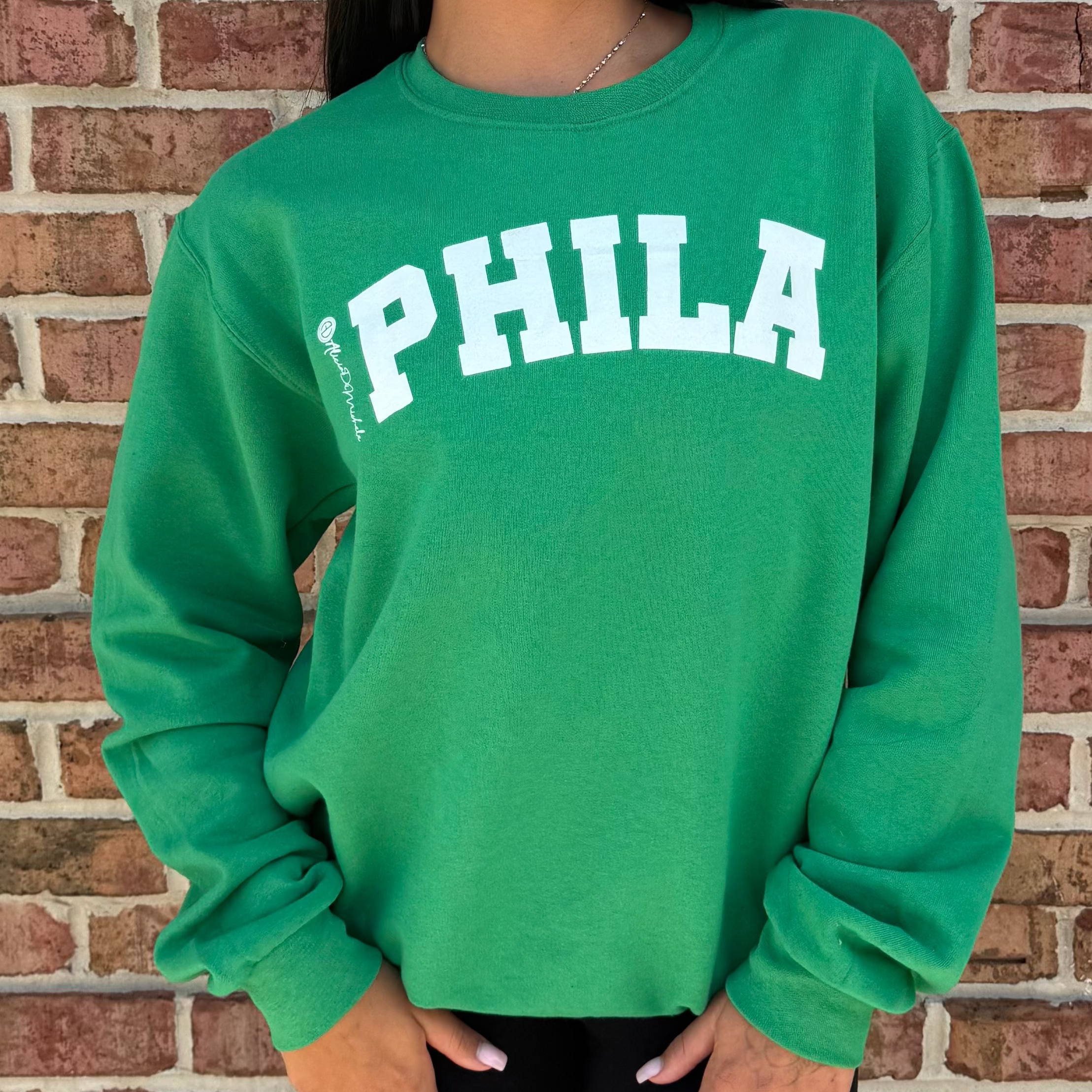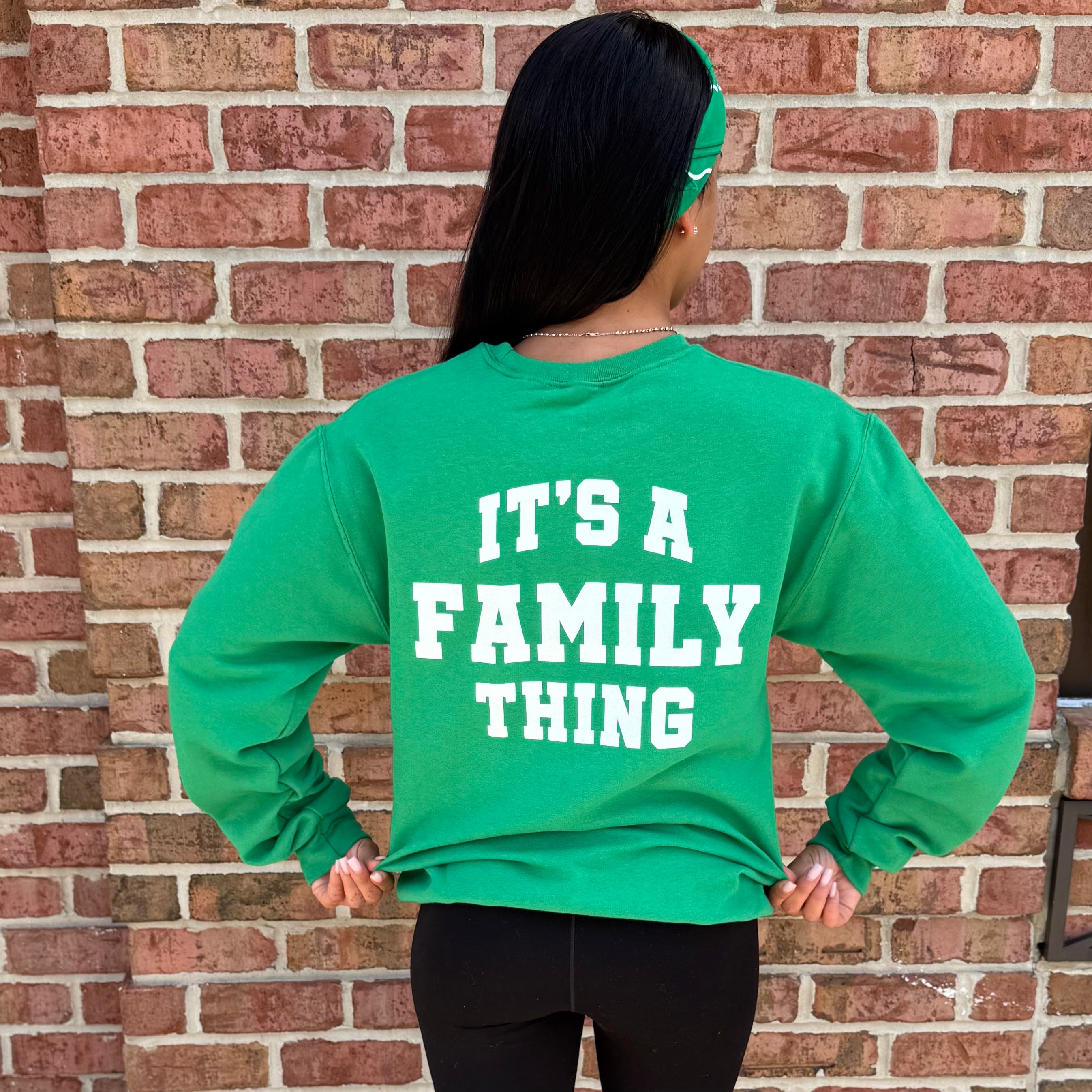 Rep your city and your crew in our Phila Family Sweatshirt. This bold Kelly green sweatshirt features a classic PHILA graphic across the front, with the words “It’s a Family Thing” stamped on the back – because in Philly, family is everything. Made with a soft, cozy fabric and an easy unisex fit, it’s the perfect piece for game days, city pride, or just staying comfy while repping your roots.