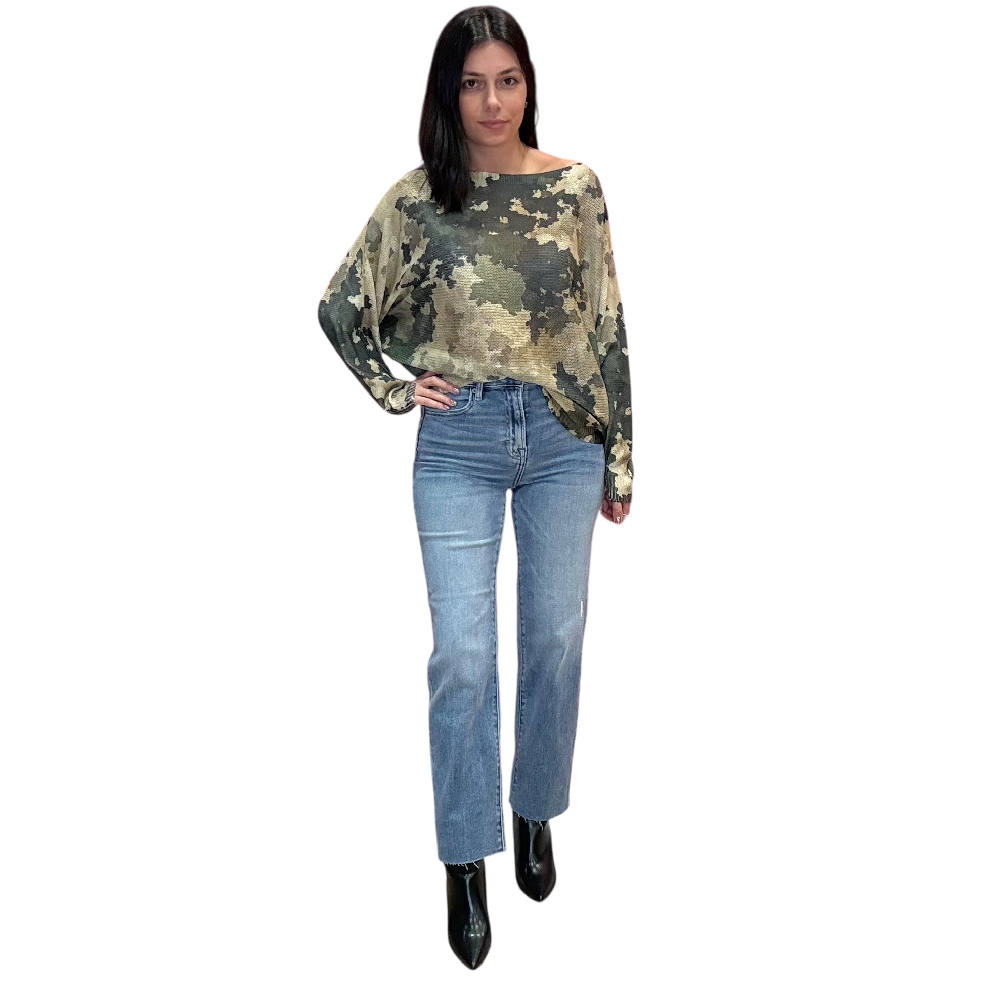 Your fall essential just got an upgrade. This Italian camo knit brings a cool, relaxed edge with a soft, cozy feel. Effortless to style, chic enough to make a statement.