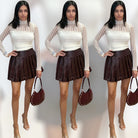 This faux leather pleated mini is your new power piece. With sharp knife pleats, a thigh-grazing length, and built-in shorts lining, it’s chic, edgy, and wearable all at once. Perfect for nights out or when you want your look to pop with confidence.