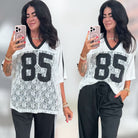 Sporty Chic Graphic Jersey Top – White