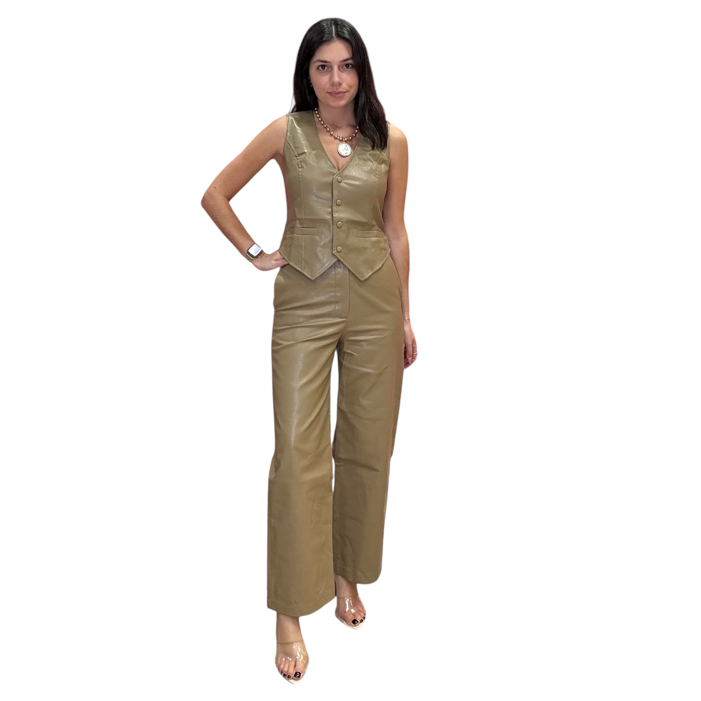 Rich textures, tailored lines, and that quiet-luxury feel we’re all craving. This faux leather vest + wide-leg pant set serves serious old money vibes — structured, sophisticated, and sexy without trying too hard. The textured finish adds depth and edge to your fall wardrobe.