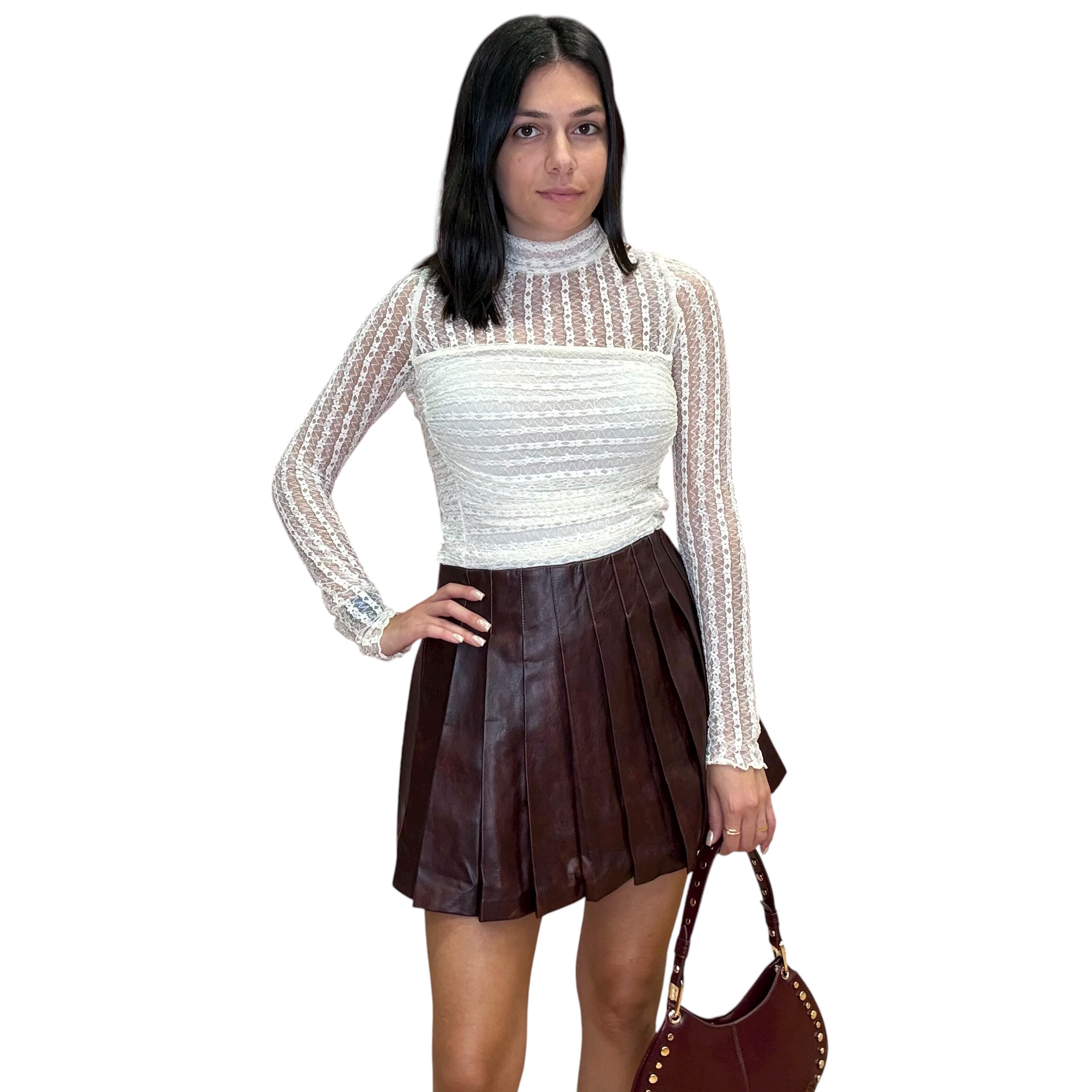 Style with Burgundy Pleated Faux Leather Mini Skirt