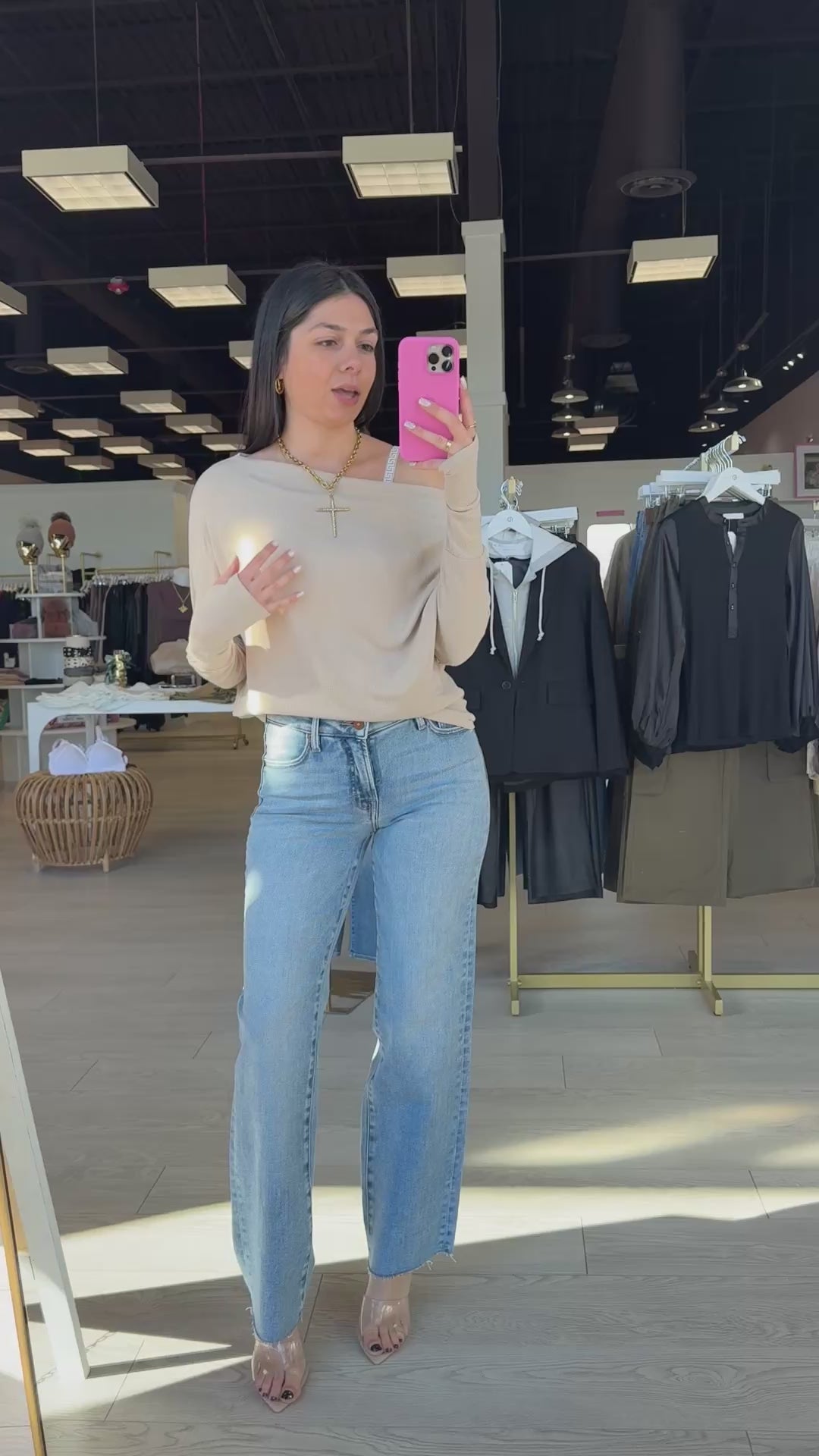 Your go-to, throw-it-on-and-go top that somehow always looks intentional. This off-the-shoulder silhouette is soft, slouchy, and effortlessly flattering — the kind of top you’ll reach for on repeat. Easy enough for daytime, cool enough for night, and made to move with your lifestyle. Bonus this top has thumb holes ✨