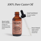 Kitsch Castor Oil is a 100% pure, cold-pressed formula that retains its rich source of antioxidants, making it an ideal addition to your beauty routine. Known for its potential to promote healthy hair growth and strengthen brows and lashes, this versatile oil also hydrates skin and moisturizes cuticles, addressing multiple beauty needs in one product.