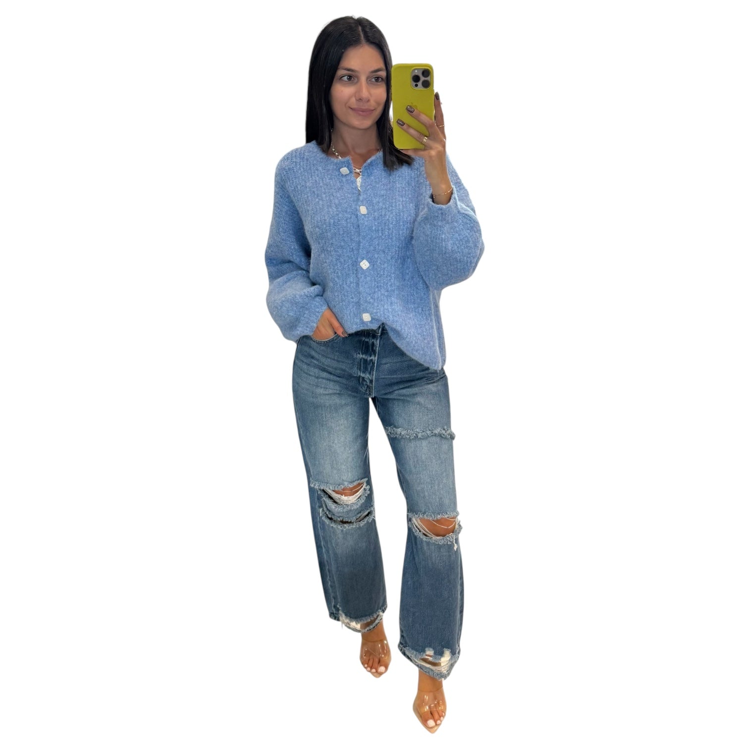 Soft, slouchy, and made for cozy days. This oversized cardigan features drop shoulders, ribbed cuffs, and balloon sleeves for that plush, wrapped-up feel.