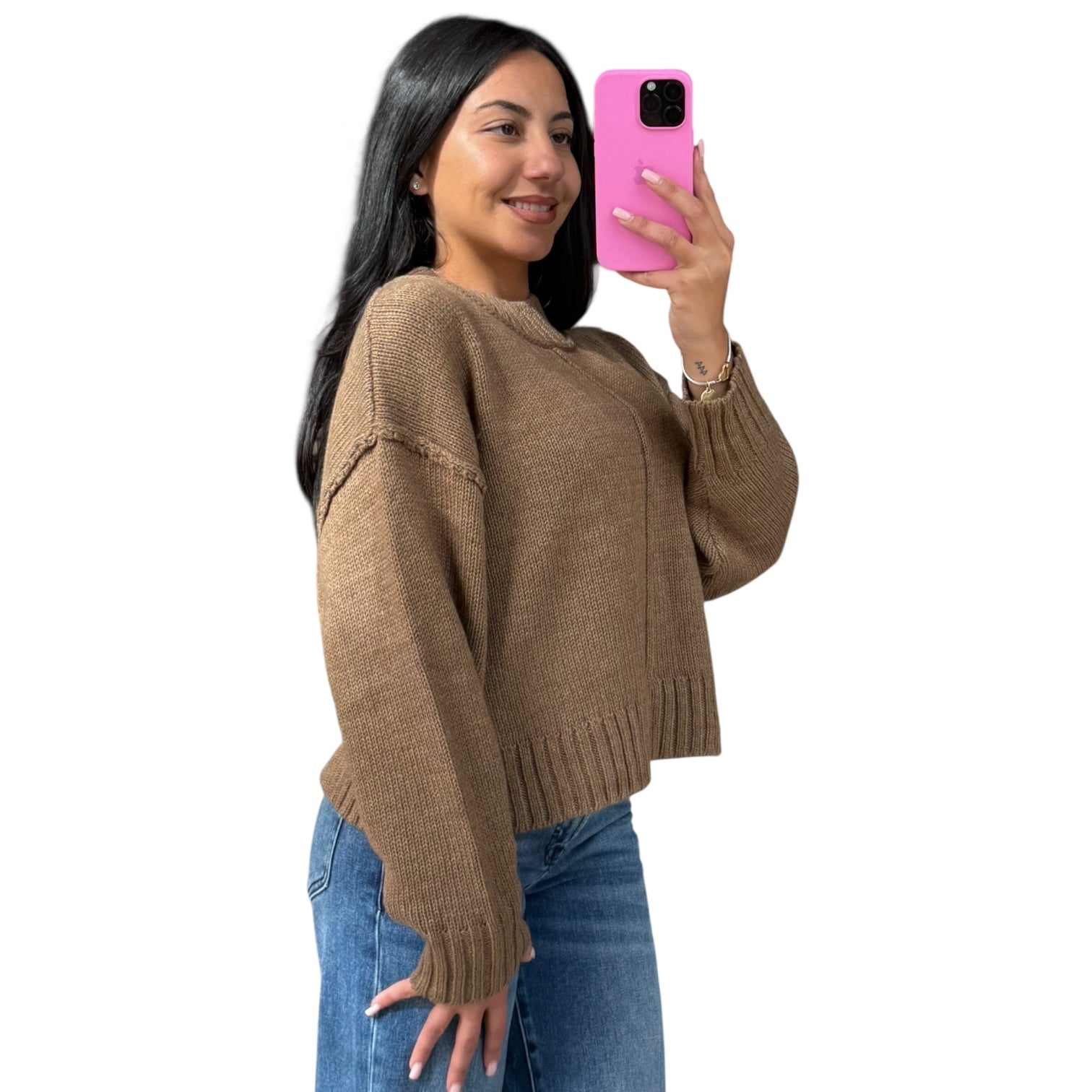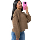 Our Brown Slit Detail Knit Sweater combines rich, earthy tones with a relaxed silhouette. The side slits give just the right amount of shape and movement.