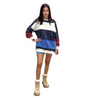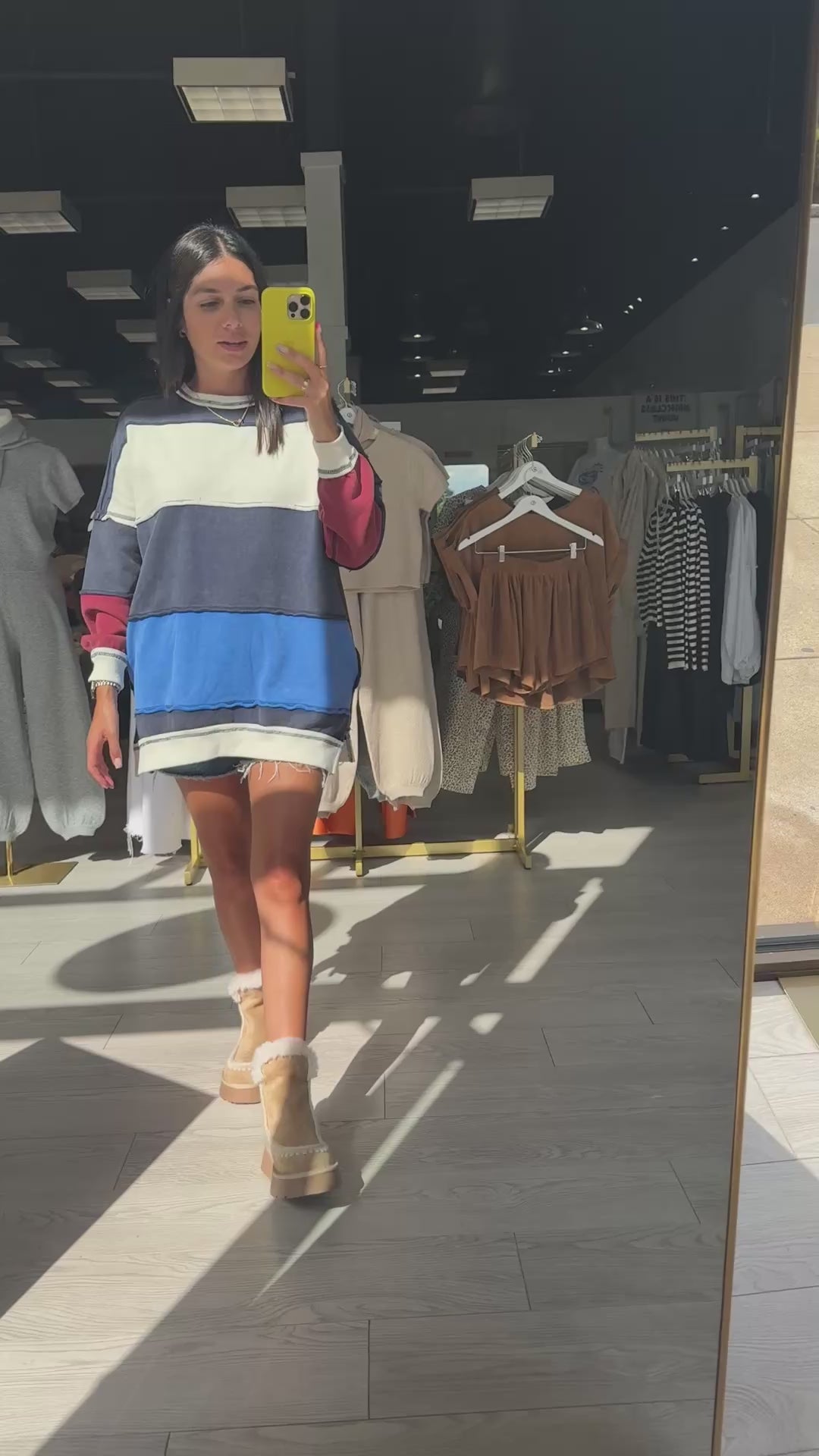 Sporty and bold with a retro edge. The Color Block Stripe Sweatshirt features vibrant color-block stripes, exposed seams, and an easy relaxed fit. The perfect mix of casual comfort and standout detail & it has pockets!