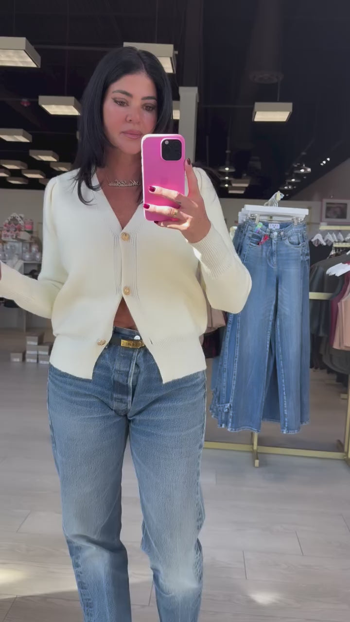 ✨ Creamy neutral, always a yes. This soft knit cardigan has a flattering V-neckline and button-down fit that layers perfectly over everything. Your new fave basic—but better.