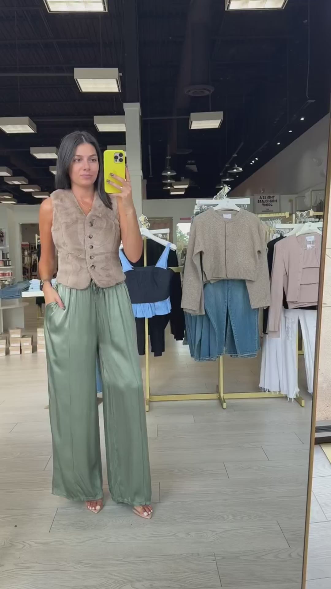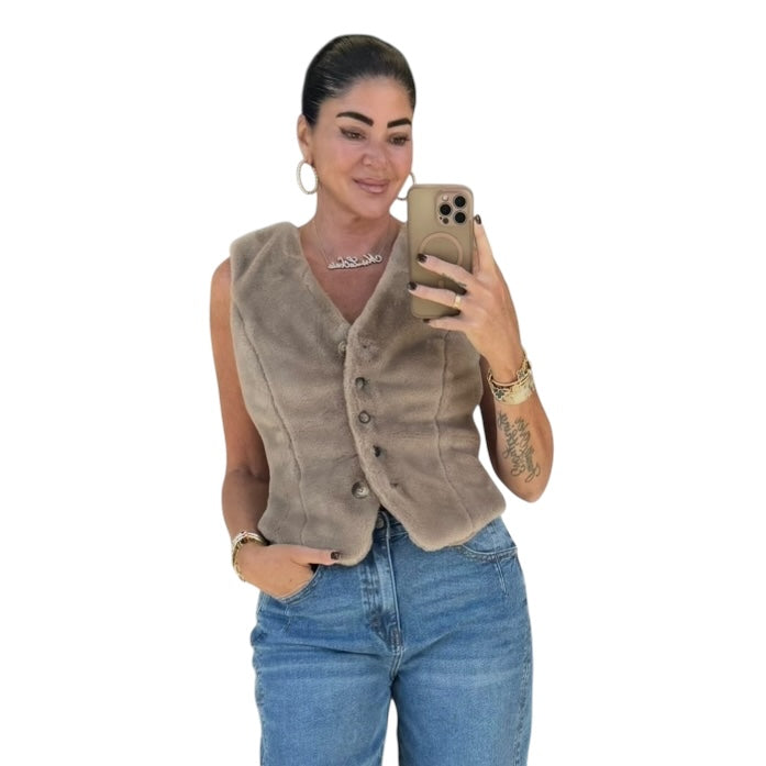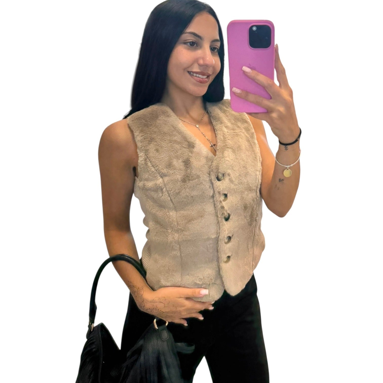 A statement layer with a luxe twist—this faux fur vest features a plush front and a contrast ribbed knit back for added comfort and perfect fit. Open front, relaxed silhouette, and fully fall-ready.