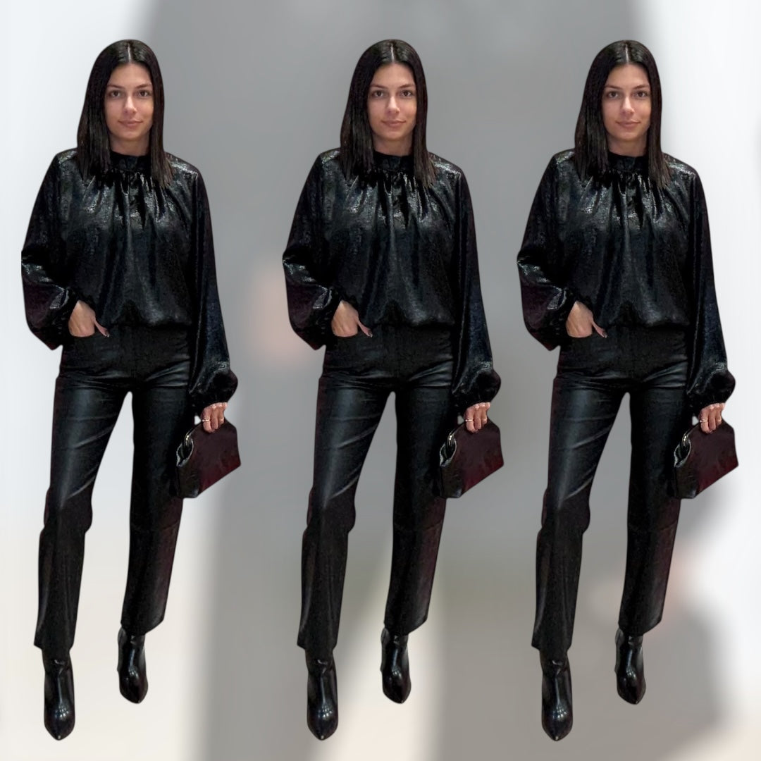 Italian Metallic Blouse - Black