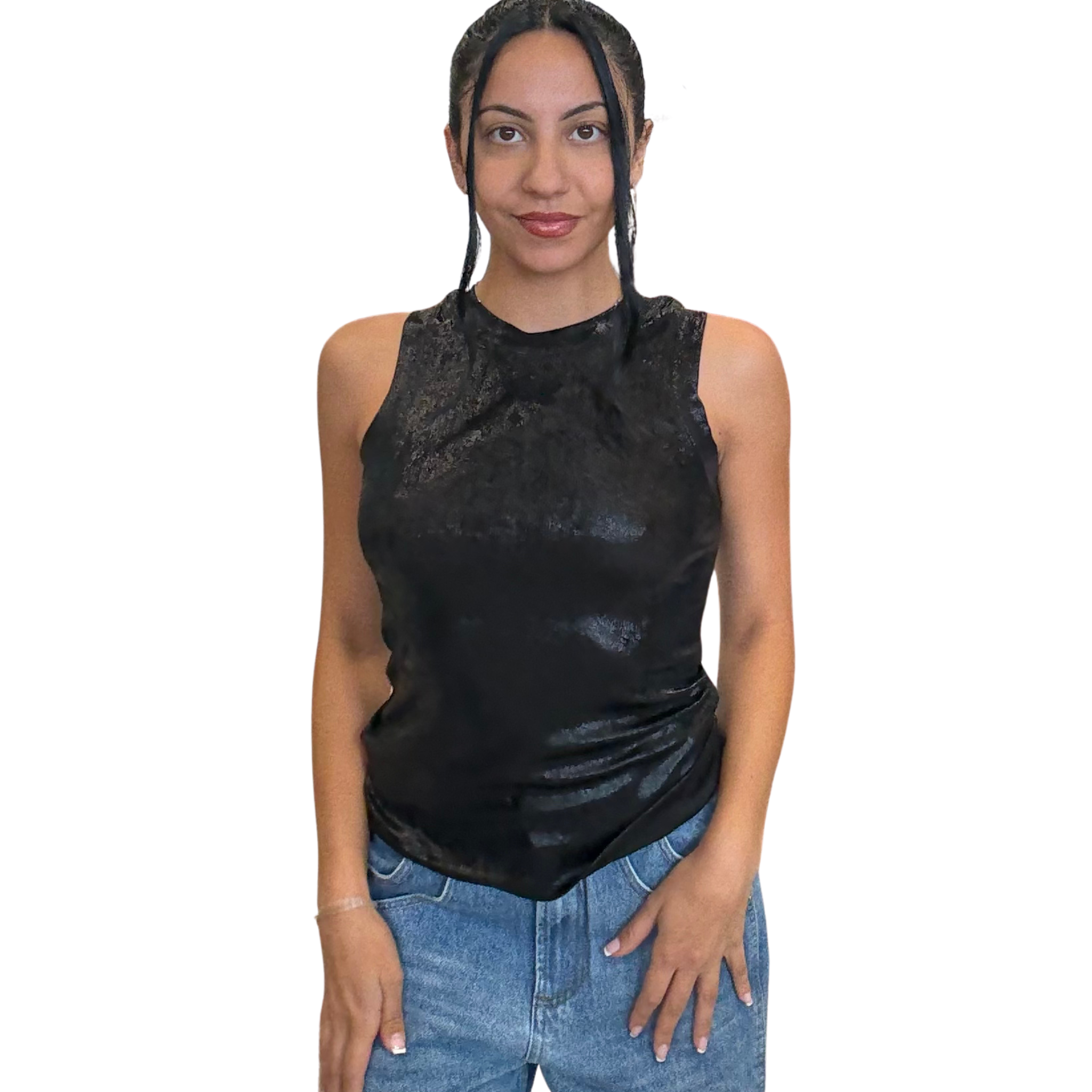 Own the night in the Metallic Black Tank 🖤✨. This chic sleeveless top features a subtle metallic sheen that catches the light with every move, giving your look a touch of edgy sophistication. With its smooth finish and flattering cut, it’s the perfect piece to dress up jeans for a night out or layer under a blazer for an effortlessly polished vibe.