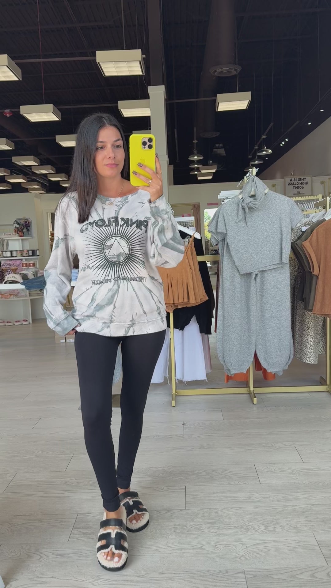 Rock legend vibes 🎸 A soft grey sweatshirt with the iconic Pink Floyd prism graphic + relaxed drop-shoulder fit. Easy, oversized, and timeless.