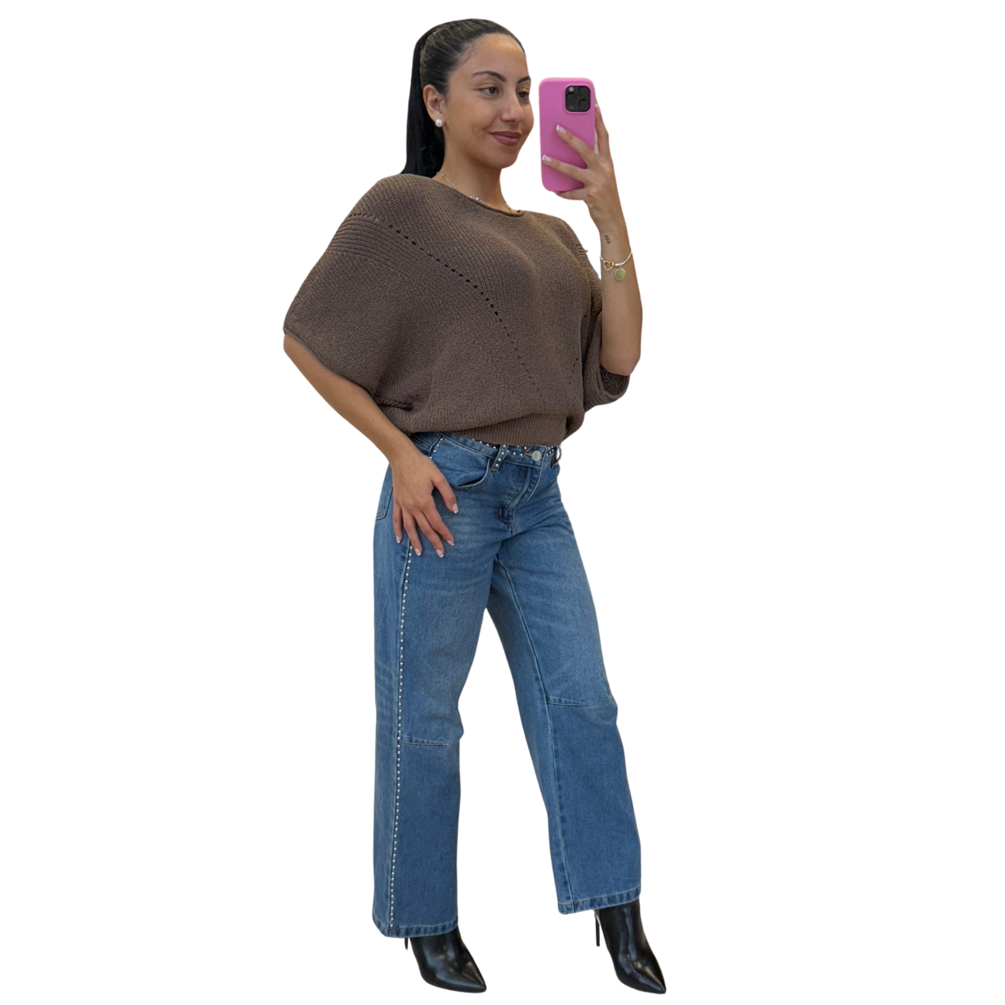Sweet and breathable 💫 This pointelle-knit ribbed sweater features rolled cuffs, short kimono sleeves, and a lightweight fit—perfect for layering or wearing solo.