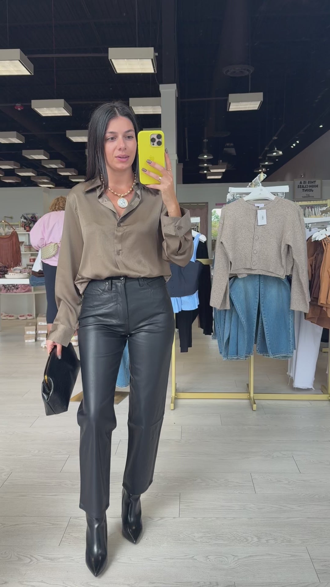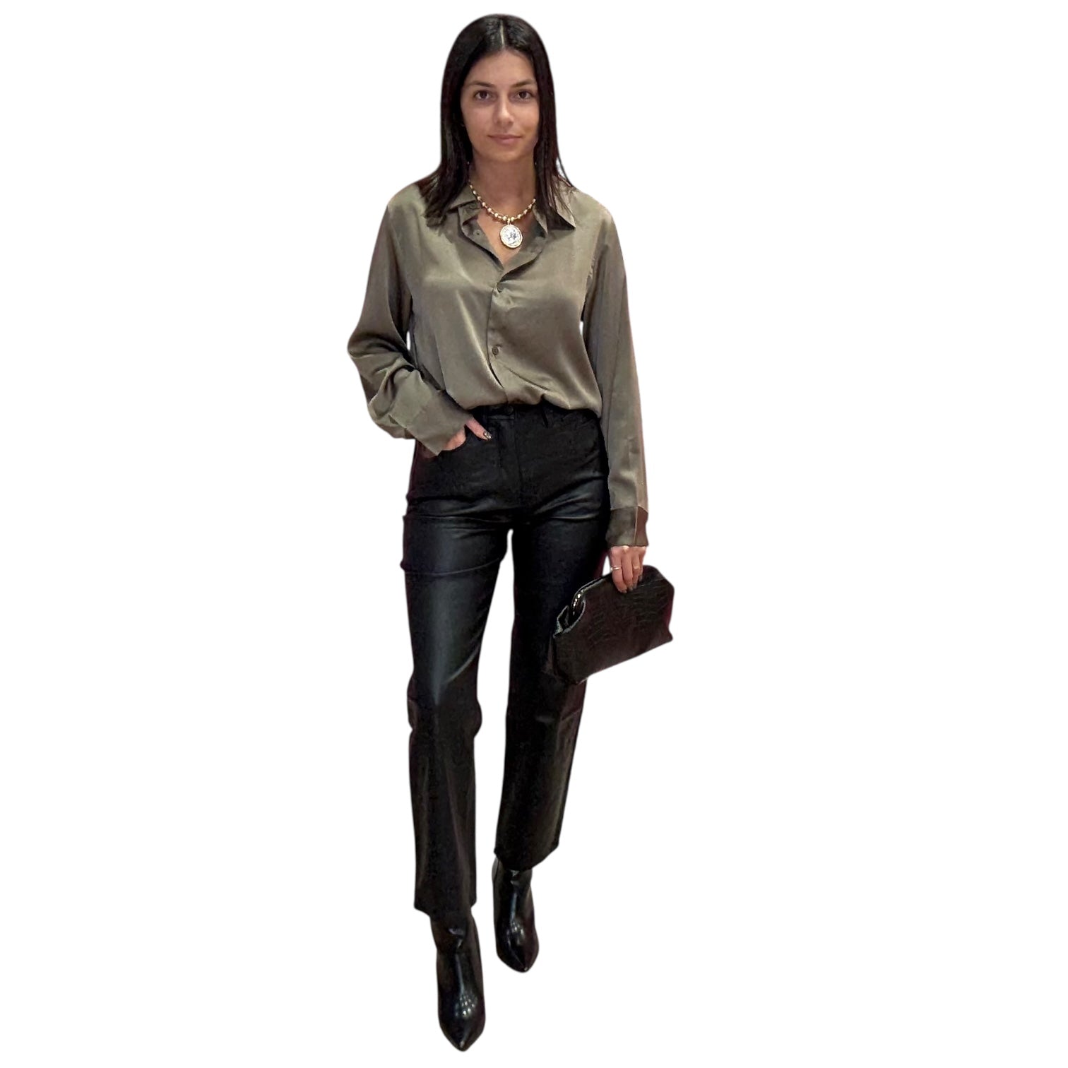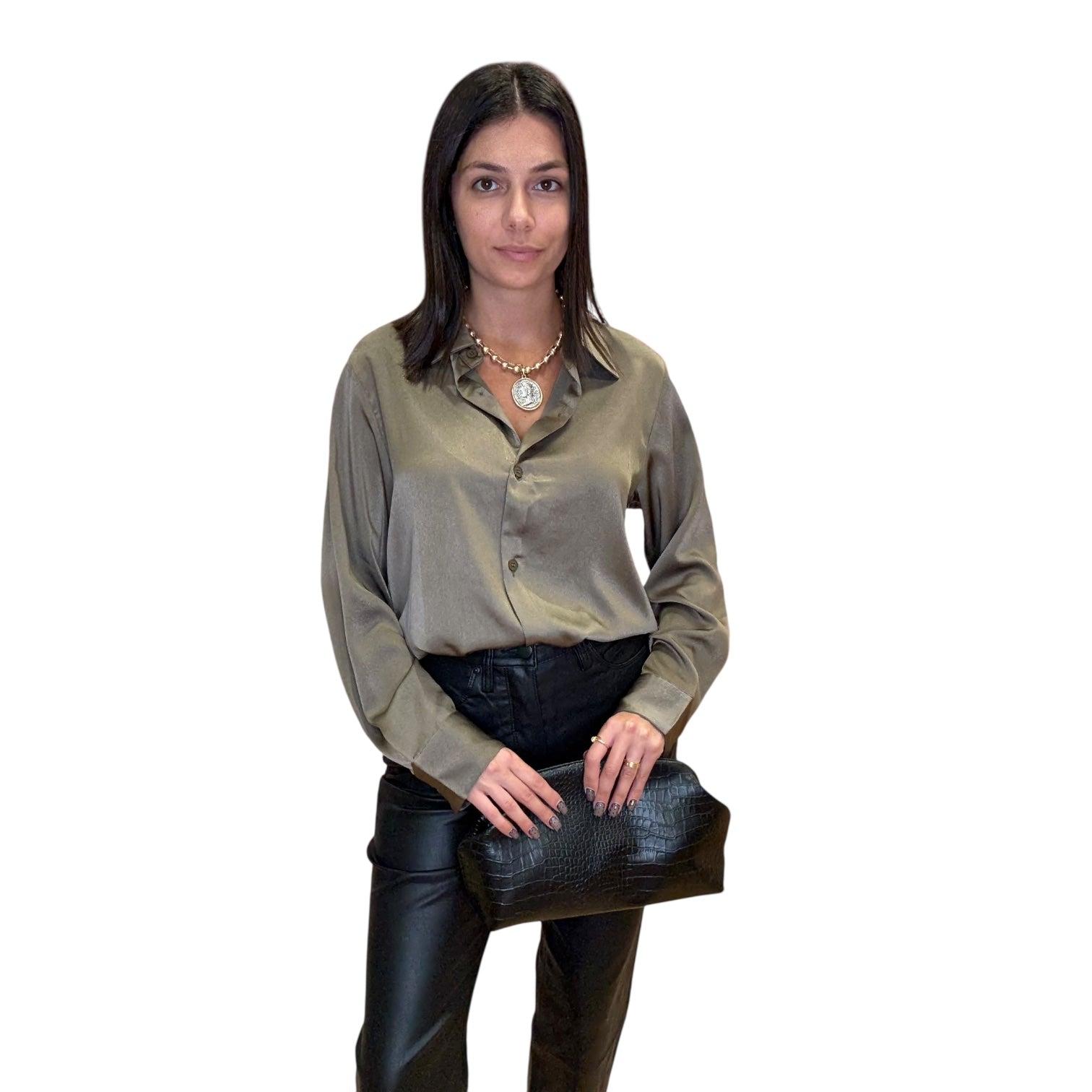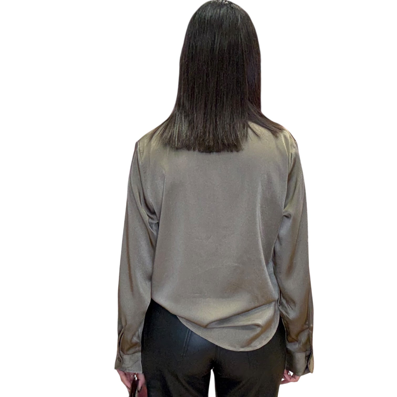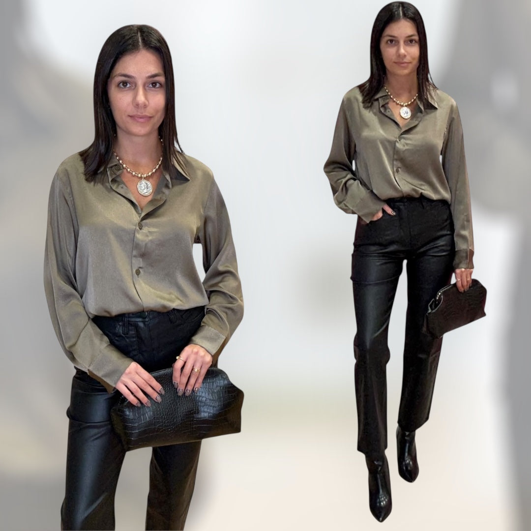 Our Satin Luxe Button Blouse in tobacco brings a warm, rich tone to a timeless silhouette. Its silky fabric and relaxed cut make it a perfect transition piece from day to night. Classic, sleek, and endlessly versatile.