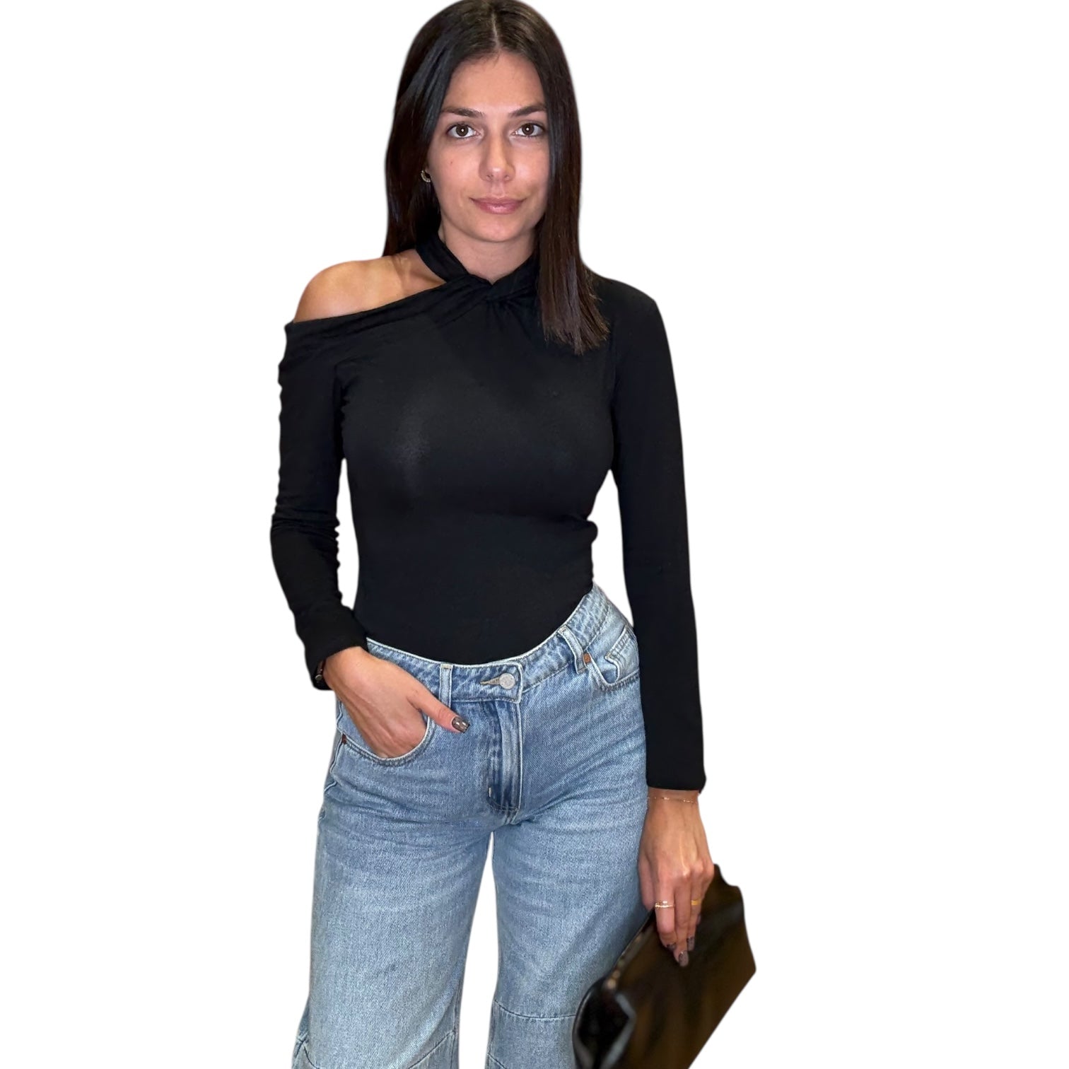 Modern and sultry, this top features a one-shoulder silhouette with a twisted knot detail for a sculpted look. Soft, stretchy, and made in the USA, it’s the black top you’ll reach for when you want an effortless statement.