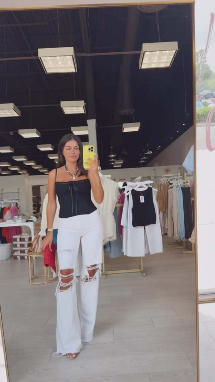 This lace-up ribbon bustier is the definition of cool-girl confidence. With delicate lace trim, adjustable straps, and a snatched fit, it’s perfect for date nights, concerts, or rooftop drinks.