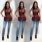 This rich burgundy tone is everything for fall. The Burgundy Button-Down Faux Vest brings bold femininity with a button-down front and adjustable waist that flatters every shape.