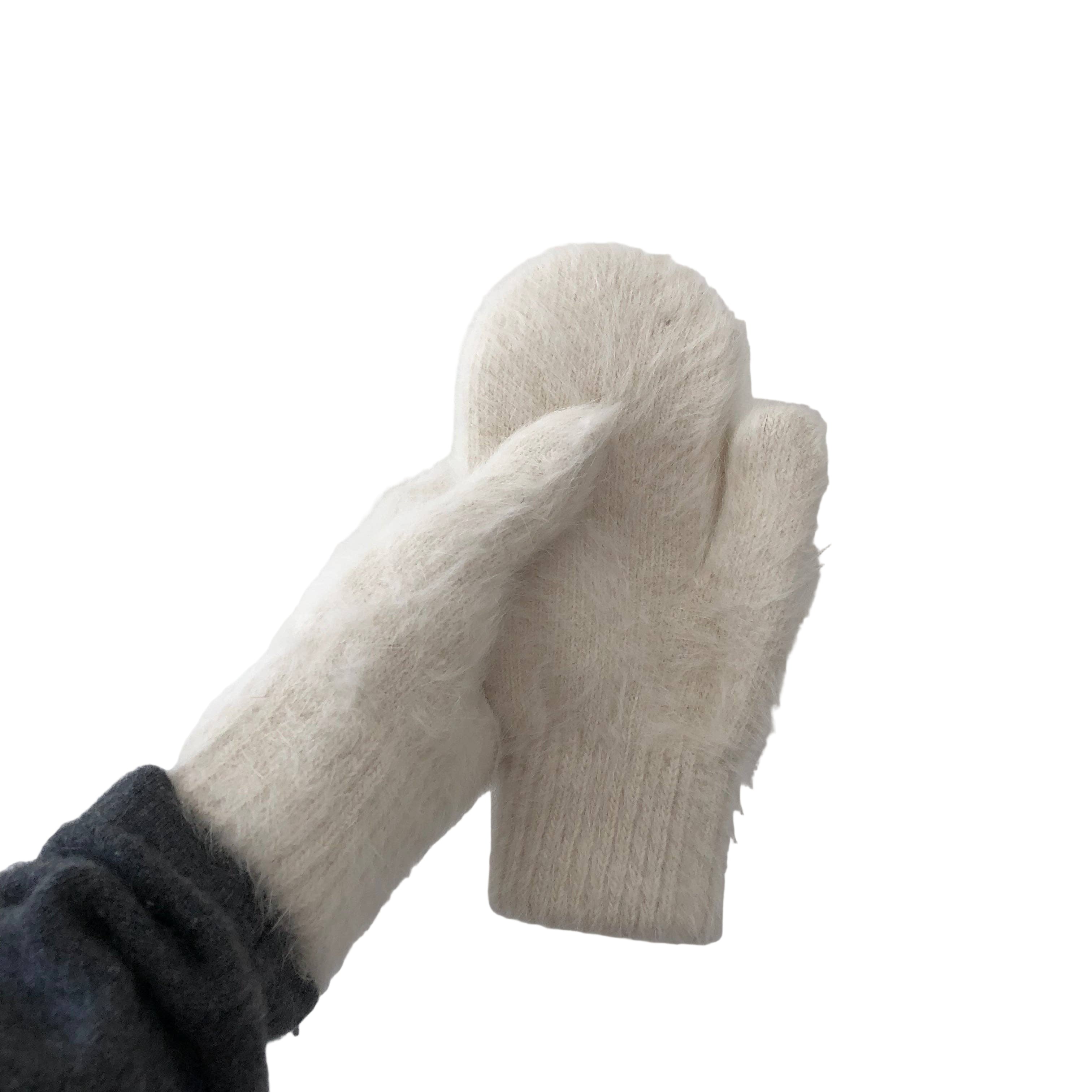 Keep your hands warm in cozy luxury ❄️ These fluffy angora mittens are crafted with a double-knit construction, making them super soft, compact, and ultra-warm. Made with a cruelty-free blend of angora, viscose, and wool, they’re designed to feel cloud-like while keeping the cold out. Available in timeless neutral shades, one size fits most.