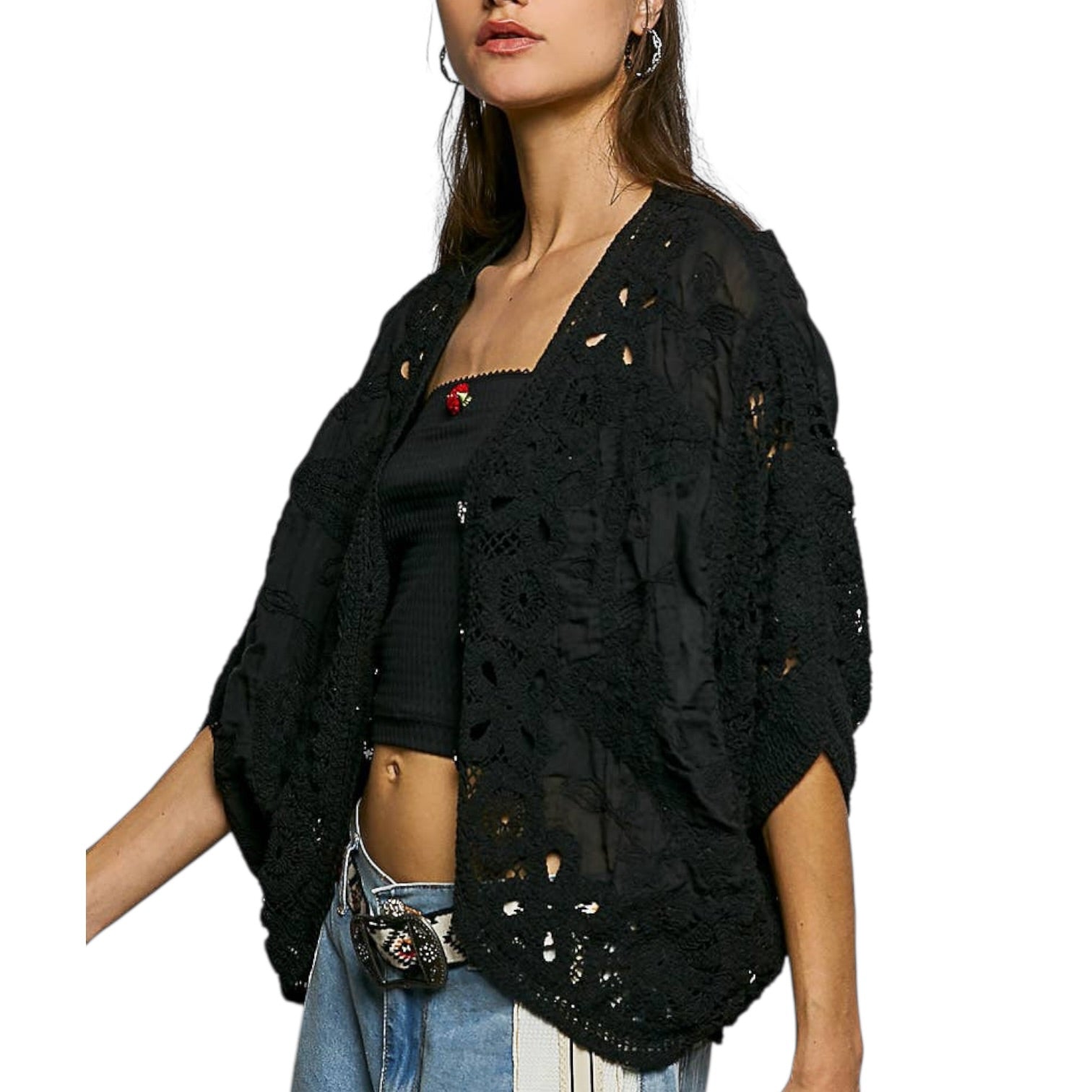 A layering staple with a little drama 🖤✨ This V-neck crochet cardigan features soft batwing sleeves, a relaxed fit, and a button-down front for versatile styling. The high-low hem gives it movement while the open crochet knit keeps it lightweight and breathable. Easy to throw on, easy to love.