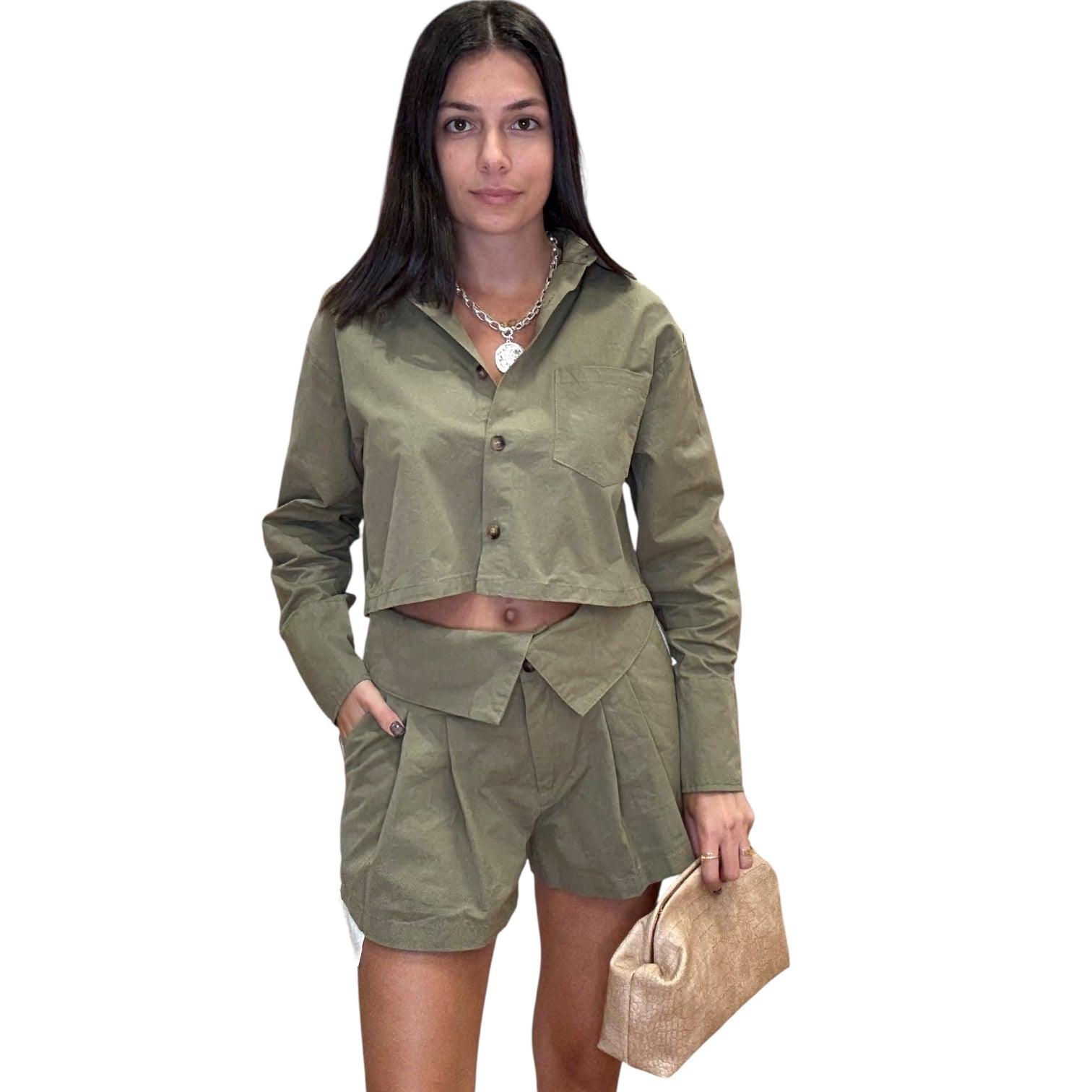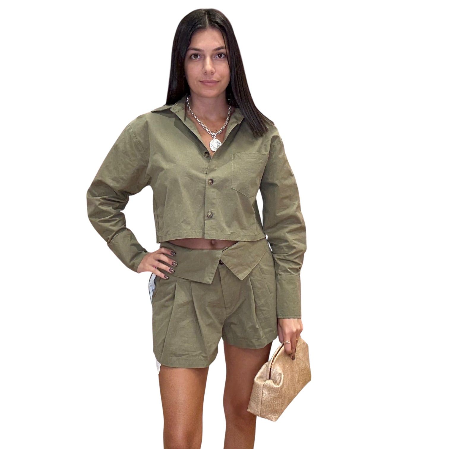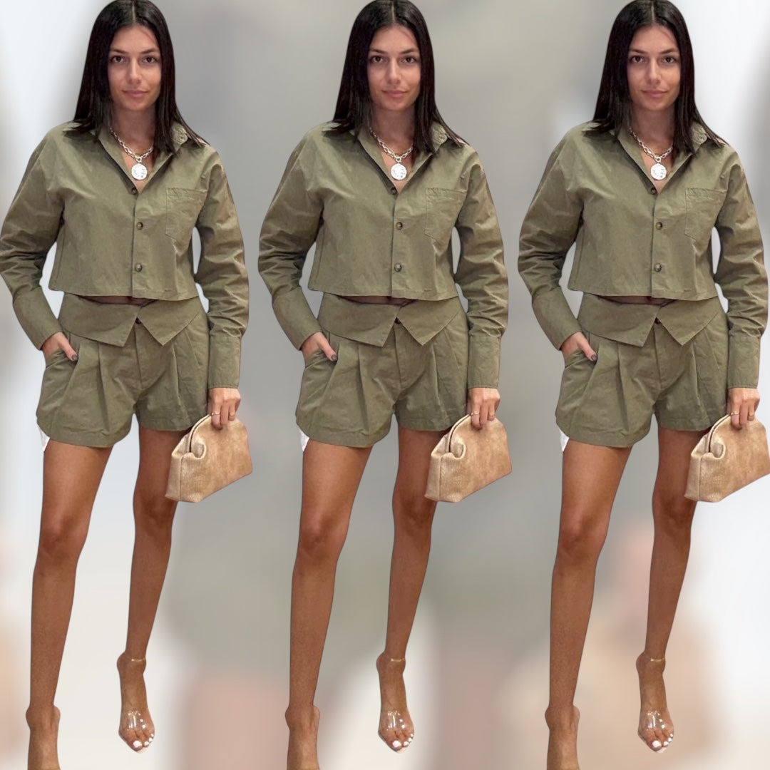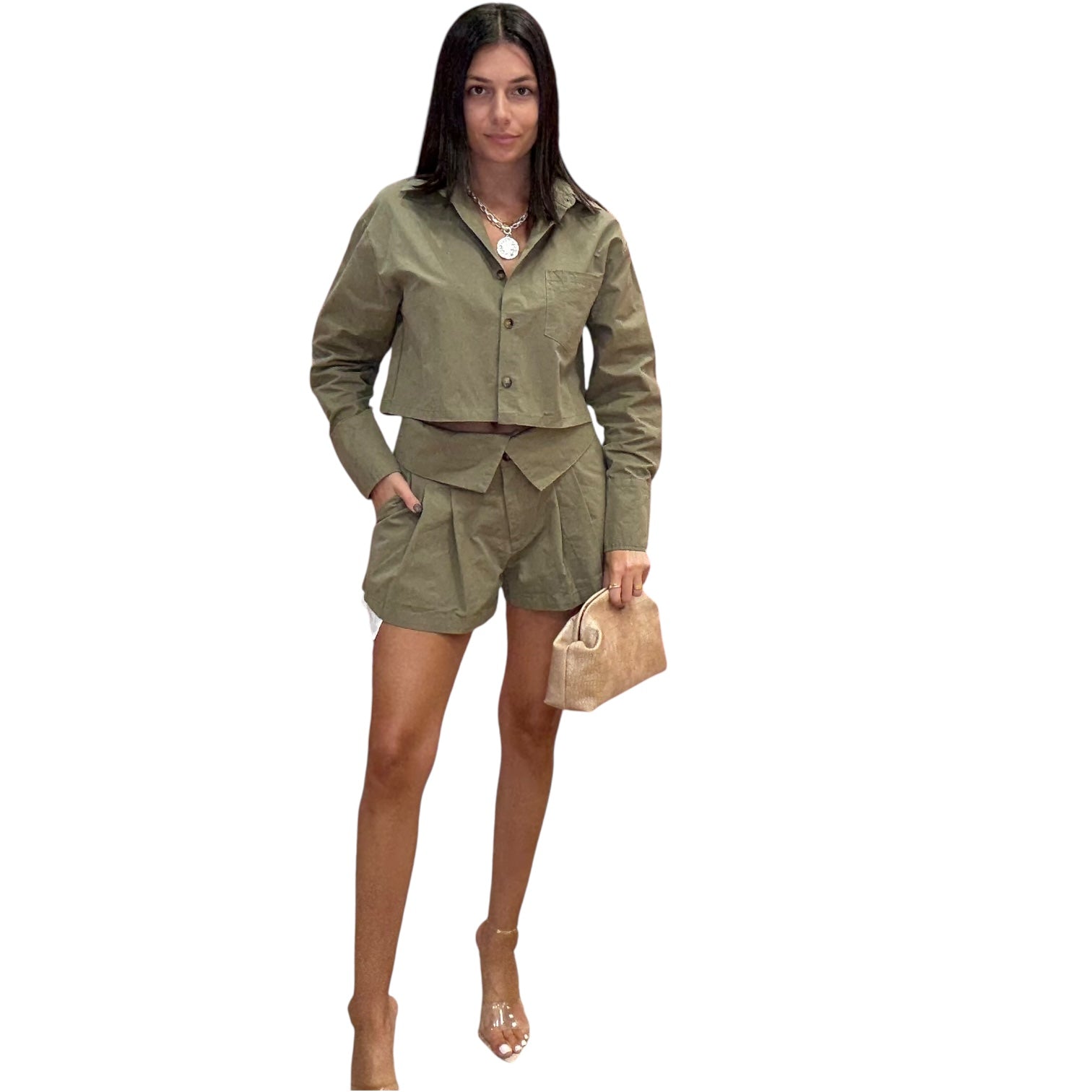 Playful yet polished, our Preppy Button Shirt + Pleated Short Set brings tailored charm with a twist. The cropped button-down shirt features a boxy fit, classic collar, and cuffed sleeves, while the pleated skort adds a flirty, preppy finish. The set makes looking put-together effortless.
