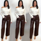 ✨ Alicia’s Styling Tip: Style them with a fitted knit top or our matching Plum Wine Vegan Leather Top for a sleek monochrome moment. Add heels and gold jewelry for a night-out look that turns heads.